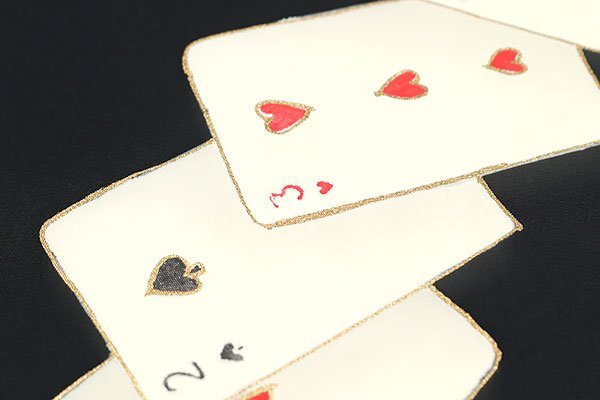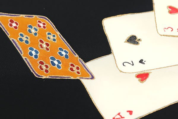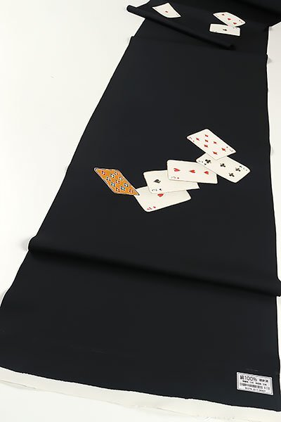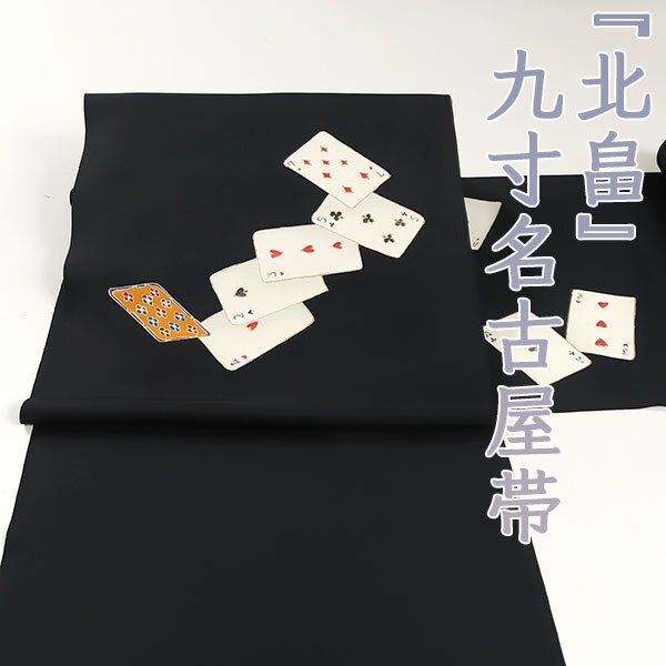 | ◆タイトル◆ | 和遊館 ONK2943 北畠 五泉 塩瀬 九寸 名古屋帯 トランプ 黒色 |