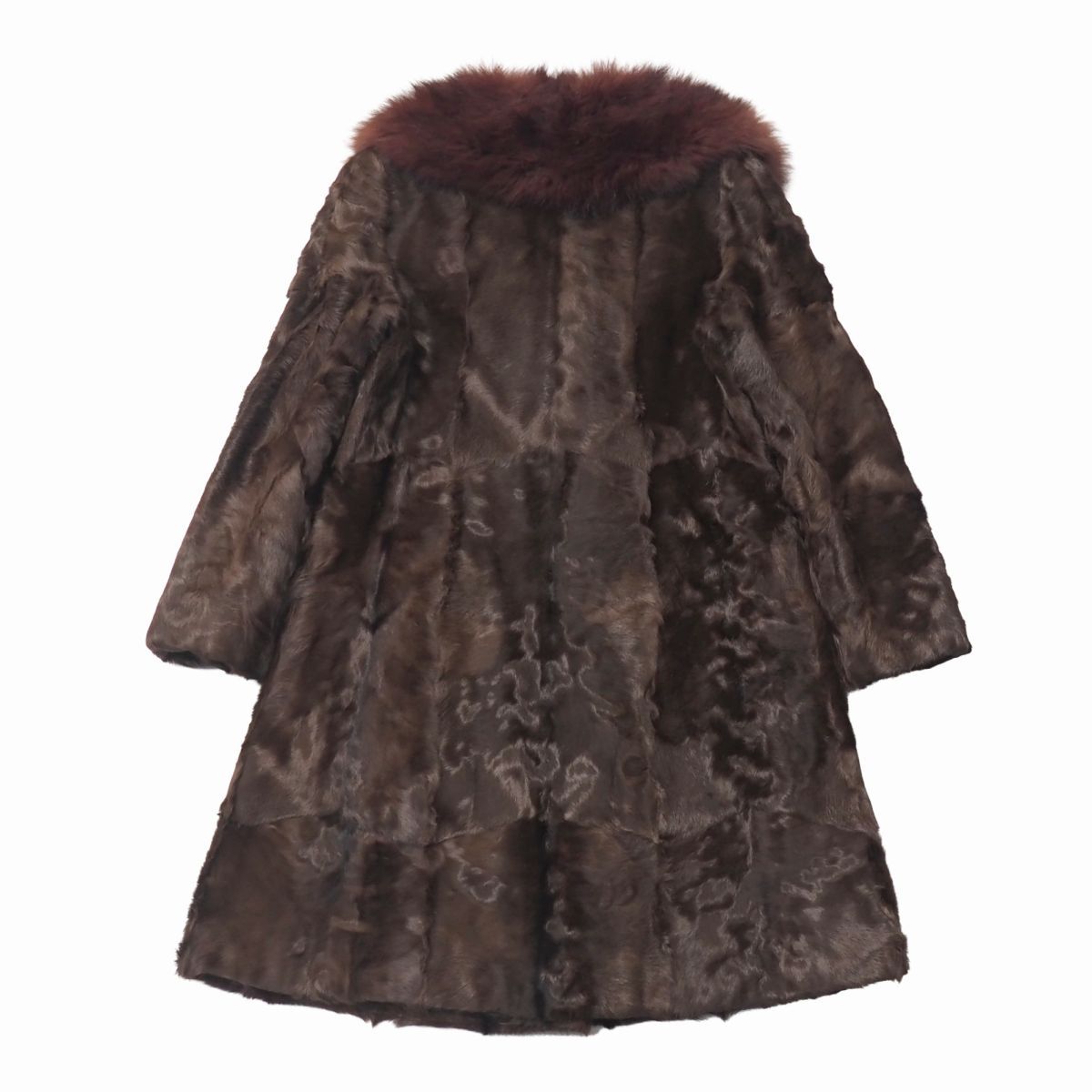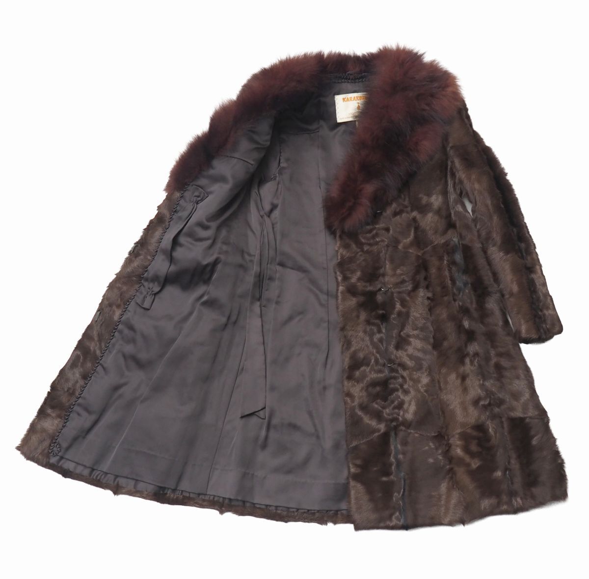 | GS5705◇KARAKORUM カラコルム ラムファー × フォックス ショールカラー ファーコート ミドル丈 毛皮コート サイズ11 ブラウン系 | |||