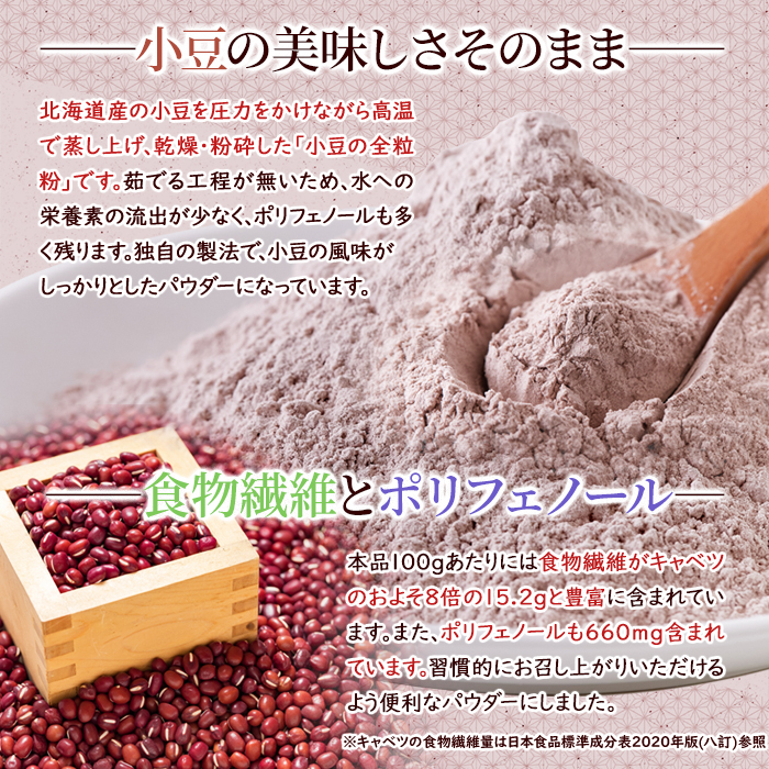| エネルギー:343Kcal たんぱく質:20.5g 脂質:1.7g 炭水化物:68.1g -糖質:54.7g -食物繊維:15.2g 食塩相当量:0.0g ポリフェノール 660mg |