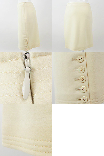 | しっかり目生地の暖かなウール素材のスカート。ハロッズらしいシンプルなデザインで着まわしがきく逸品です。左裾にはボタンをあしらったスリットがあしらわれ、ちょっとしたポイントになっています。生地や仕立てがよく、高級感があります。サイドファスナー仕様。 |