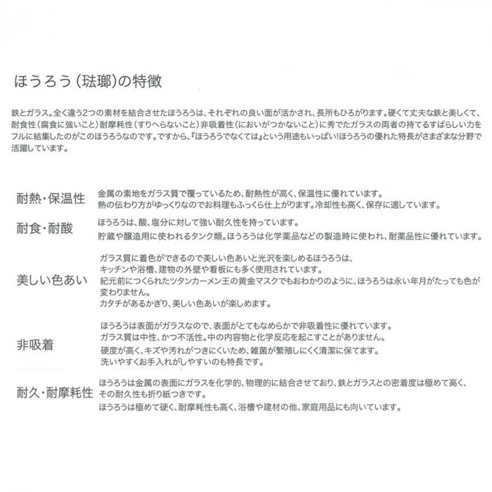 | 素材・材質 | 本体:ほうろう用鋼板 |