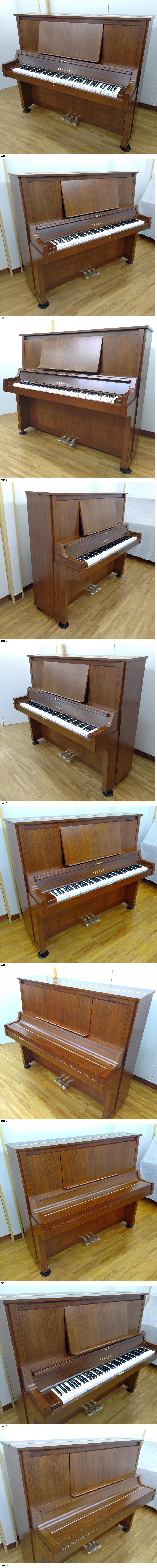 | 良き時代のヤマハピアノ高級機種です。今では考えられない最高級のブラジリアンローズウッドを、惜しげもなくふんだんに使った希少な1台です。美しい杢目と各パーツ丁寧で細部にまでこだわった造りは、コスト重視の現行品番とは比較にならない存在感を放っています。 内部はピアノの命である音とタッチにこだわり、整調/整音作業を施しました。結果、ローズウッドの材質特性も相まって素晴らしい鳴りを得ることができました。芯のある深い音ながら美しい響きを両立させた音色、指先の動きに敏感に反応する音の立ち上がり、同時代の良質なYAMAHAピアノと比べても唯一無二の響きです。可能な限り試弾をお勧めします。ぜひご自身の目と耳で体感ください。 外装は必要な塗装処理で美品に仕上がっています。目立つキズはありませんが、ピアノ背面の状態は他の出品に比べ、少し見劣りするかもしれません。 ※色味は照明/角度により変わります、アップの画像が現品に近いです。 ※材質について知りたい方は「ブラジリアンローズウッド・楽器」でお調べください。 ☆弾く喜びと所有する満足を得られる価値ある1台です。可能な方はぜひ一見ください。 (注1)新品に見えるほどきれいに仕上げていますが、高照度の照明で凝視すると僅かなスレなどは見つかるかも知れません。あくまでも中古商品ゆえくれぐれも完璧を求められる方のご購入はご遠慮ください。 (注2)オークションにご参加の方は、事前に齟齬を防止するため【商品説明】から下段の【注意事項】まで熟読の上ご入札ください。 | ||