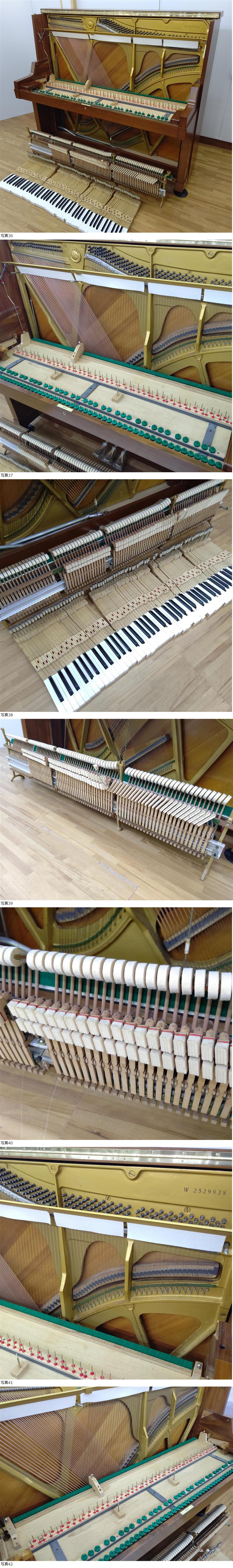 | ◆内部機能の調整(整音・整調作業)は各項目にわたりチェックし、必要な調整作業を施しています。画像46【調律/整調チェックシート】参照 ◆外装はパーツ毎塗装しているのできれいに仕上がっています。 ◆内部・裏側は専用器具で丁寧にクリーニングをしました。特に鍵盤はお子様がお使いになることを想定し、念入りに3回の作業工程(除菌含む)で仕上げています。画像44.45 (Cleaning画像はイメージです同等の作業を行っています) お越しいただいた方にいつでも試弾していただけるよう調律をしていますが、運搬時の振動による影響も考えられますので、搬入後に状態をみて落札者様で実施されることをお勧めします。ピアノは内・外装とも丁寧にチェックして出荷いたします。 | ||