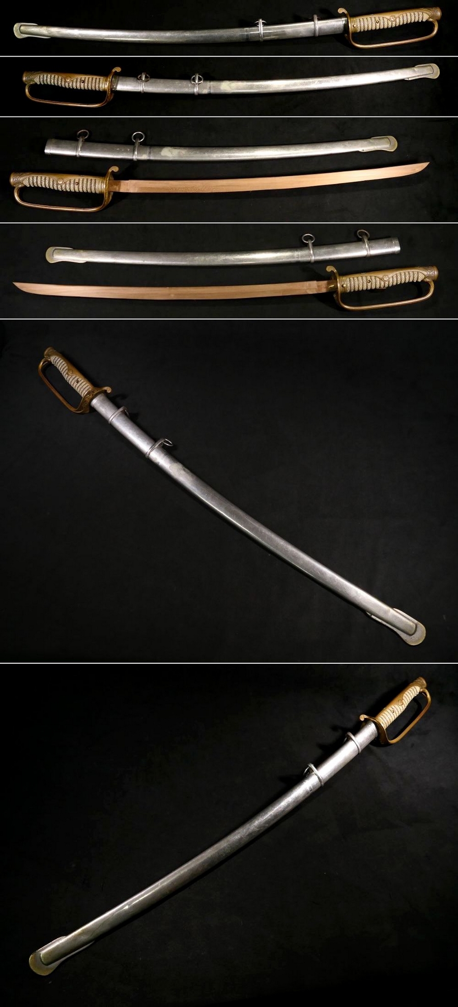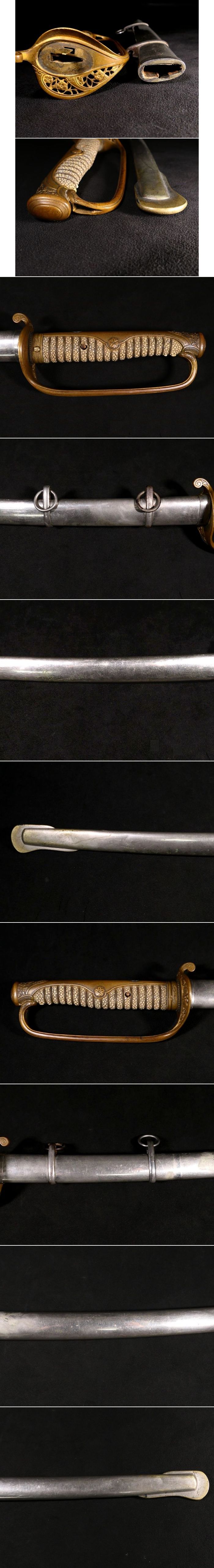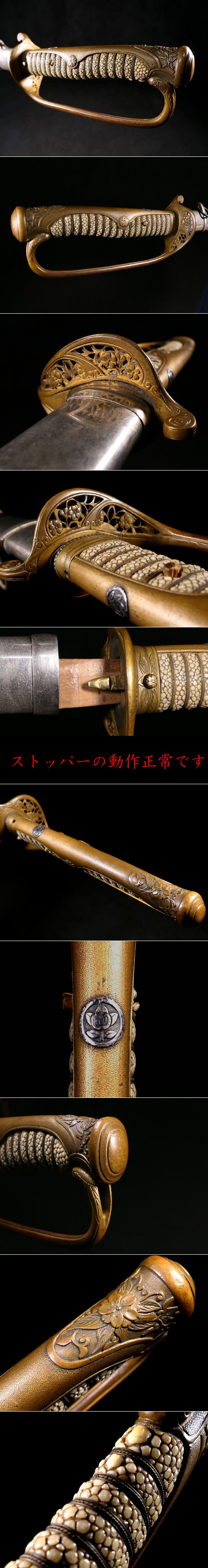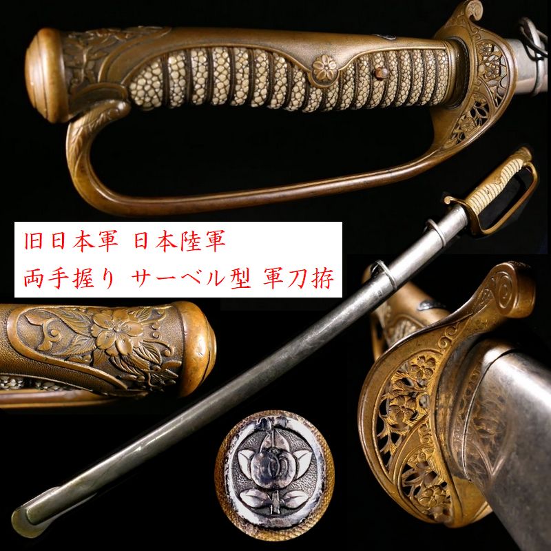 | 商品説明 | 陸軍 両手握り サーベル型 軍刀拵えのご紹介です。 粒の大きな親鮫も見られる上質な鮫皮の使用された 本歌の軍刀拵えでございます。 ストッパーも正常に作動いたします。 この機会に是非手に入れて下さい。 状態は全体的に見て概ね良好です。 多少の錆や小傷くらいはございますが 大きく鑑賞を損ないうことはないと思われます。 古い物ですので多少の傷みはご理解下さい。 つなぎは合せでありハバキがございません。 その他、詳しい状態等は画像にてご判断下さい。 |