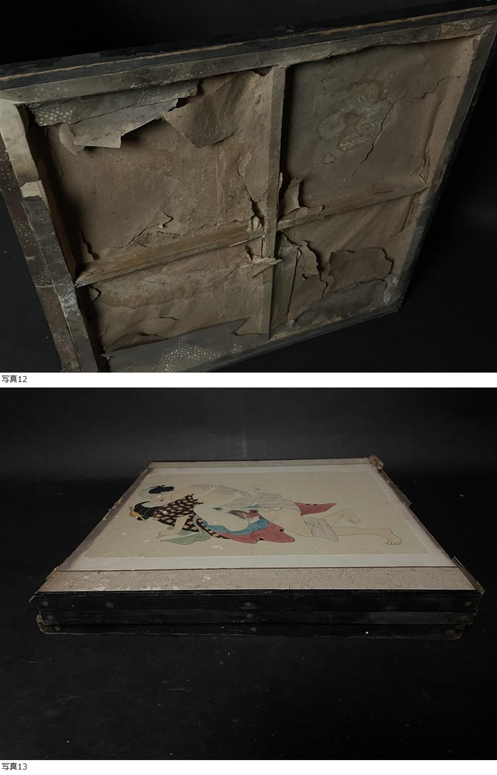 【真作】 時代 枕絵屏風 春画 浮世絵 紙本 三枚 日本画 版画 無落款 明治期 [No.2] [浏览原始页面]