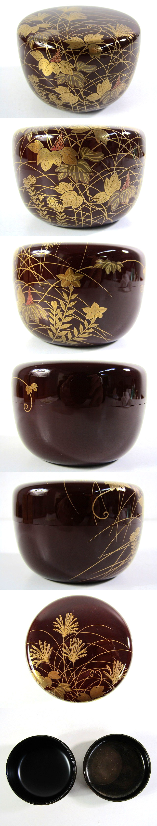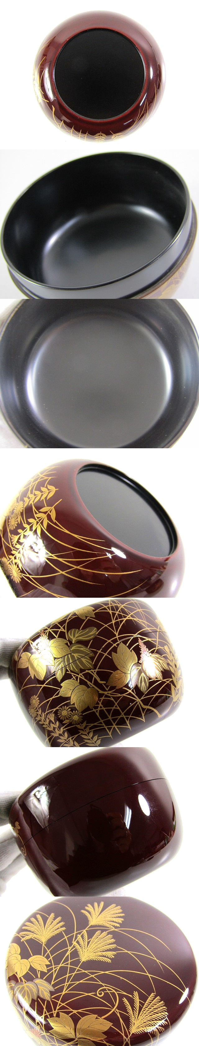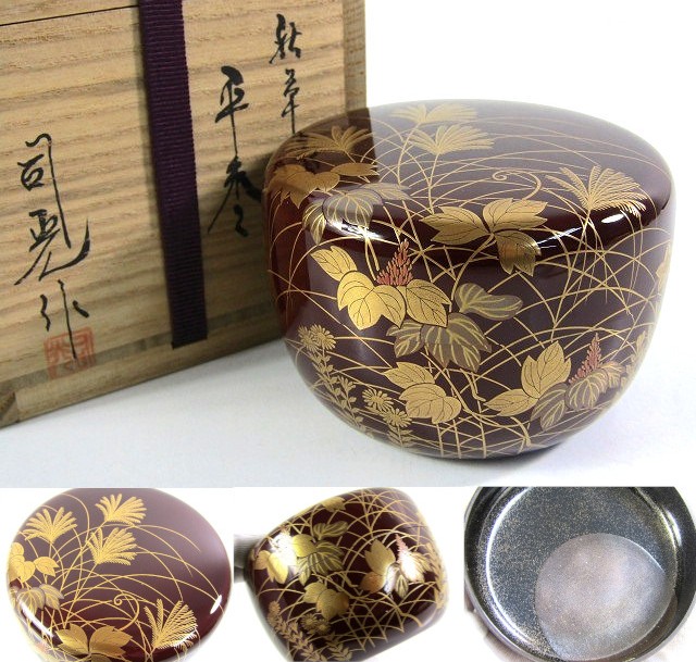 蒔絵師 細川可光 作 秋草蒔絵 内梨地 平棗 共箱【説明欄に詳細写真有り】の出品です。