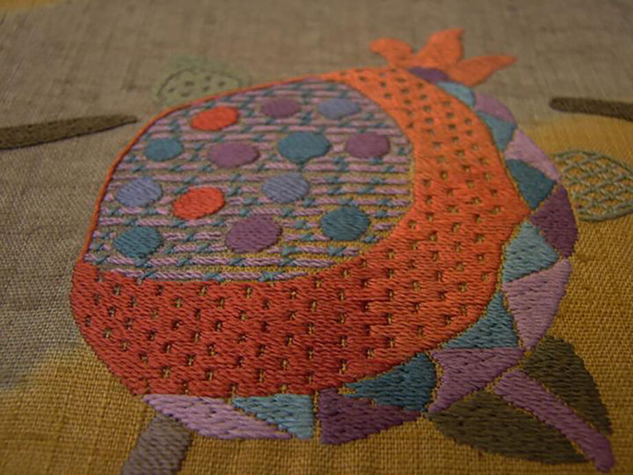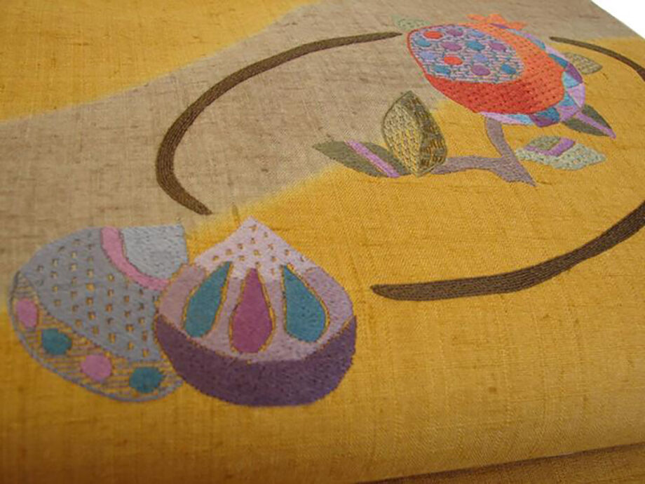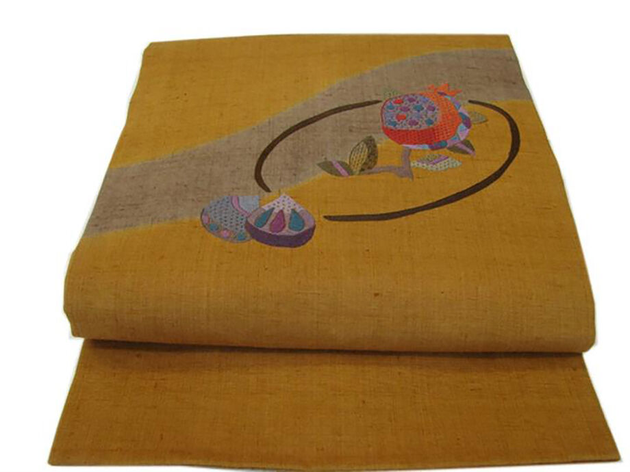 | 商品説明 | しなやかなさらりとした扱い易い紬地にスワトウ刺繍の名古屋帯。 濃い黄金色地に茶鼠の染色、赤茶、紫、松葉色等の織柄。 |