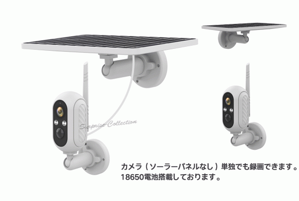付属品 本体、アンテナ、台座、ソーラーパネル、18650電池パック、取り付け用器具、簡易日本語説明書(電子版、必要な方はメールアドレスをご連絡ください)