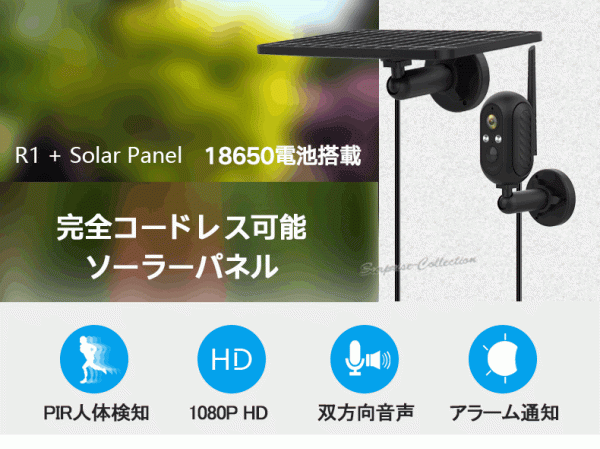 ソーラーパネル 屋外 Wifi 防犯カメラ 200万画素 IP67防水 128GB対応 人体検知 赤外線 日本語アプリi-Cam+ 18650電池搭載