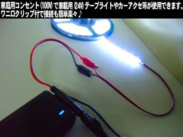 ◆◆AC100→DC24V変換アダプター3A 72W◆◆ ■家庭用100V→トラック等、車載用24Vに変換するACアダプターです。 ■家庭用コンセントで車載用品がご使用頂けます。店舗や家にLEDテープライトの飾り付けにも最適です。 ■車載用電装品の点検も、この変換アダプターがあれば手間なく簡単にできます。 車のバッテリーから検品、バッテリーを室内に保管している方も多いと思います。それを解消できる商品となります。 ■容量は3A(72W)と大容量ですので、LEDテープライト(車載用イルミネーション)、カーオーディオ、カーアクセ、シガーソケット、液晶モニター等にも使用可能です。 ■先端はワニ口クリップになってますので、挟んだりつまんだりと非常に便利な仕様となっております。 ■カーライフの様々なシーンでご活躍下さい。 ■仕様&セット内容 ■ご注意 | |||