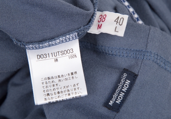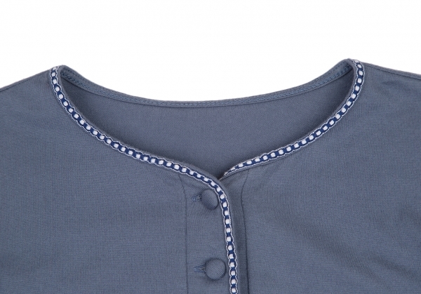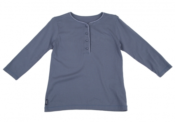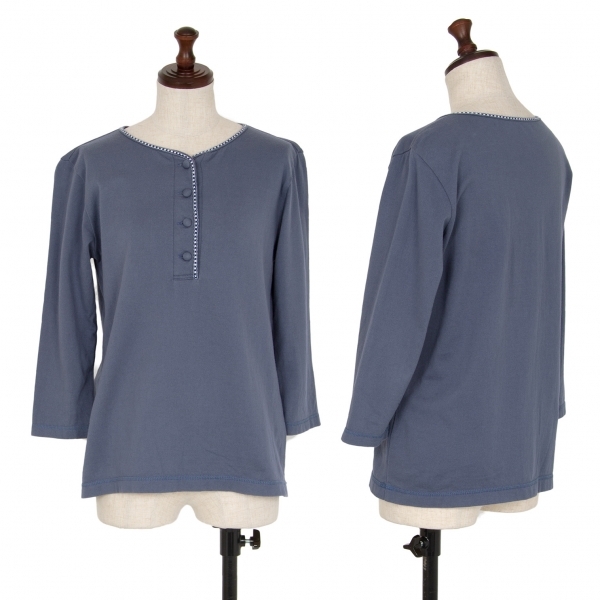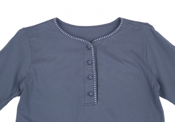 | マドモアゼルノンノンMademoiselle NON NON テープ装飾ヘンリーネック8分袖カットソー ブルー38M |