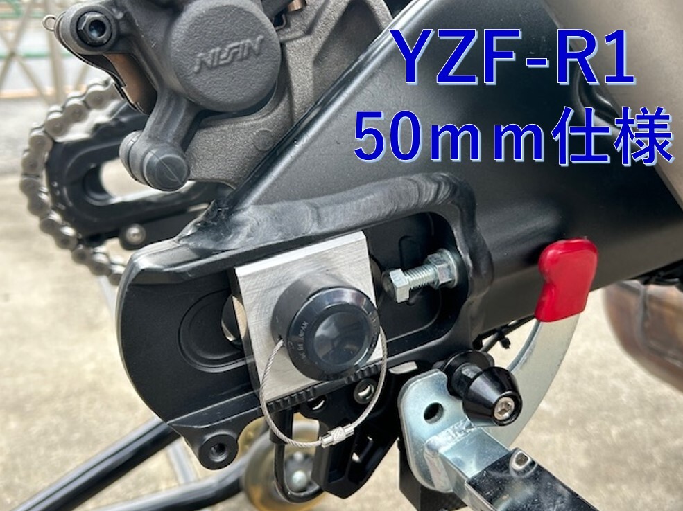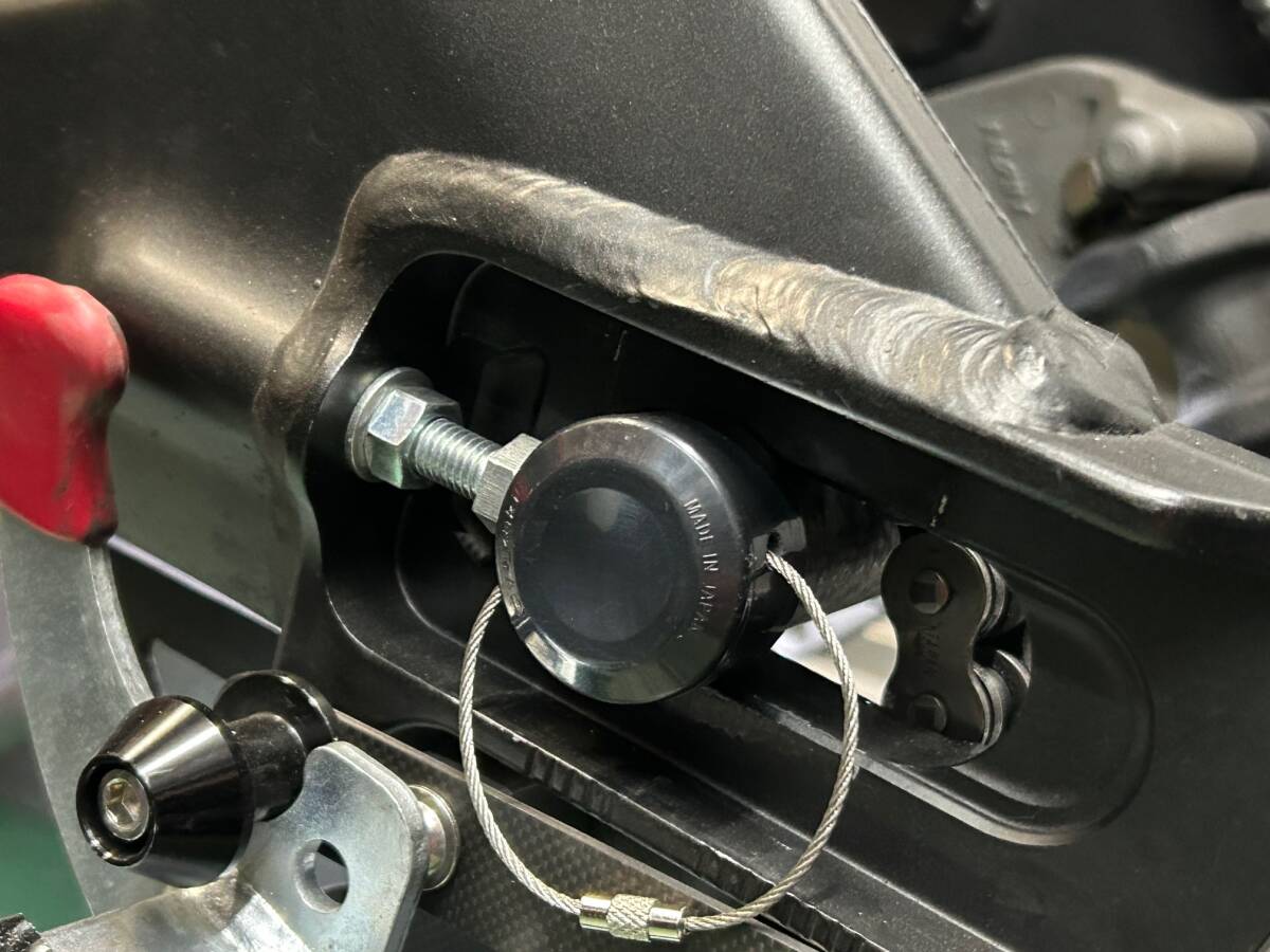ホイール装着の際、ブレーキキャリパーが不安定で装着が 困難な状況を解消できるサポートツールです。 右側から差込み、キャリパーサポートをスイングアームに 仮止めしておけますので、安定した作業が可能となります。 また、ホイール取り外し時もブレーキホースの負担軽減や スイングアームの傷つき防止にもなります。 中央のパイプ部分はカーボン製ですので軽量/高剛性です。 画像はYZF-R1(15~23)に50mm仕様 CBR1000RR-Rに60mm仕様を装着した状態です。 また、左側(スプロケ側)から使用する事で、 チェーンをかけておくことも出来ます。 大型車のシャフト径Φ28mmの車両であれば、使用可能です。 MT10 GSX-R1000R GSX1300R隼 S1000RR等 適合については画像の寸法を確認の上、ご自身で判断願います。 落札後に50mm/60mm どちらか指定して下さい。 |