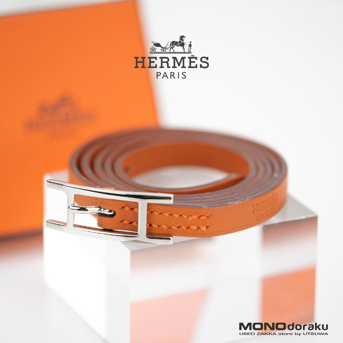エルメス アピ3 HERMES Hapi3 レザーブレスレット □J刻印 2006年製 オレンジ×シルバー金具