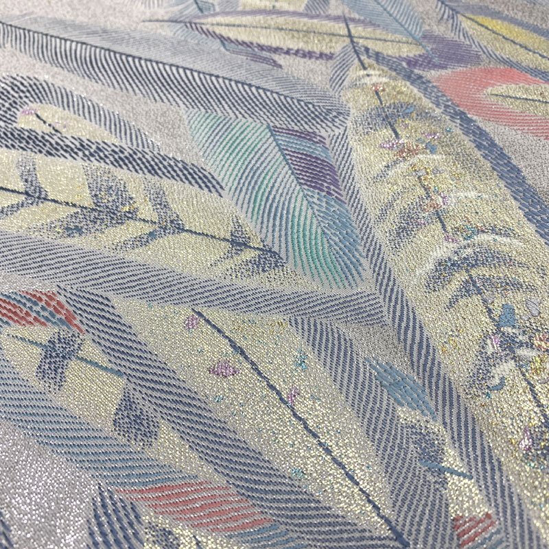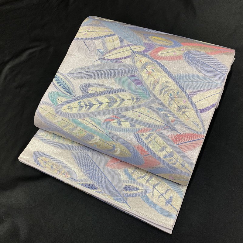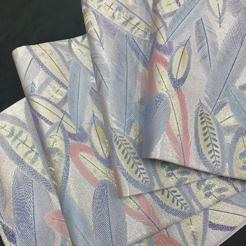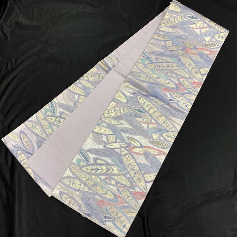 | ◇羽根 羽毛 ラメ 金糸 振袖にも 六通 袋帯◇美品 (No.hd) 〈華羽彩光文〉羽毛が幾重にもふわふわと重なり、淡く煌めくような袋帯です。ラメが所々に入り、振袖用の帯にもいかがでしょうか。 特に目立つようなシミ・ダメージもなく美品です。 【素材】正絹 【色】薄紫 *モニターによって色味は実際と異なる場合がございます。 【サイズ】幅:31cm、長さ:428cm *素人採寸のため、多少の誤差はご容赦ください。 上質な逸品ですので、いかがでしょうか?よいお品物でお勧めです^^ | |