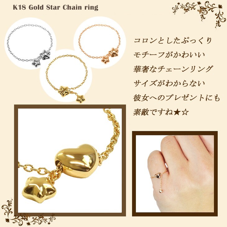 | 商品名 | K18WG フリーチェーンリング ハート&星 |