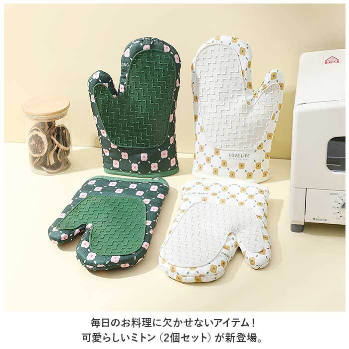 | 商品説明 | ・・毎日のお料理に欠かせないアイテム!可愛らしいミトン (2個セット)が新登場。 ・【キッチンに彩りをプラス】 ・ナチュラルなフラワーモチーフのデザインで、お料理のモチベーションもアップ! ・【手のひらをガード】 ・ふんわり程よい厚みのある生地感。熱々のお鍋やお皿を持ち運ぶ際のやけどを防止。 ・【耐熱&滑りにくい素材】 ・手のひら部分は耐熱温度260度のシリコン素材。凹凸仕様で滑りにくいのもポイント。 ・【安心の大きめサイズ】 ・手首までカバーしてくれるサイズ感。大きめの天板なども、しっかりと持つことができて安心。 ・【収納ラクラク!ループ付き】 ・フックなどに掛けておけば、いつでもサッと取り出しOK。 ・【便利な2個セット】 ・取っ手が2つ付いたお皿やお鍋を持つ際にも大活躍。 |