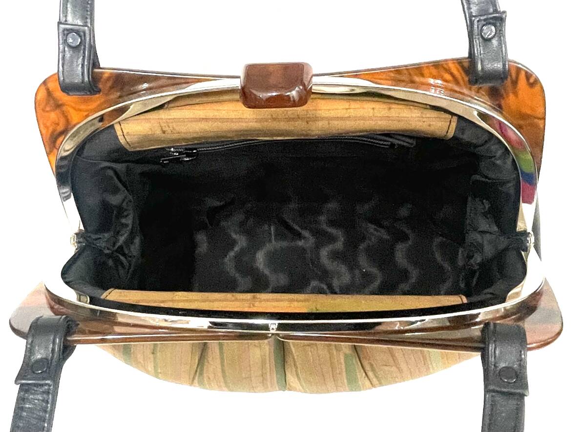 | 【B】【14908】☆★和装小物 和柄ハンドバッグ がま口バッグ べっ甲切替がま口 レトロ アンティーク 現状品☆★ | ||