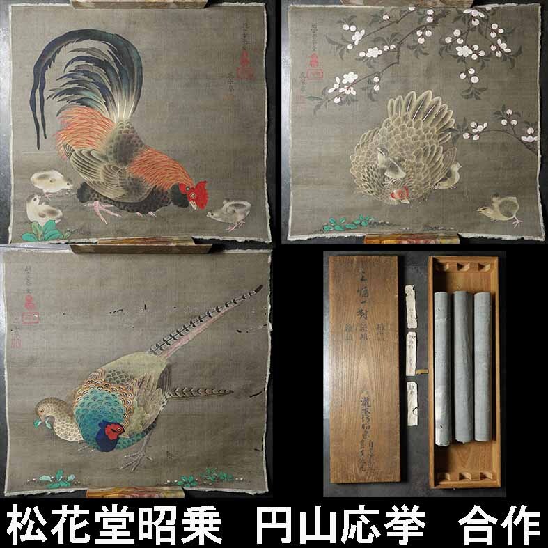 【サイズ】:本紙が縦 38.5cm、横 41.5cm 【本紙】:絹本。 【 箱 】:極め箱あり。 【状態】:一部虫食いあり。他良好 |