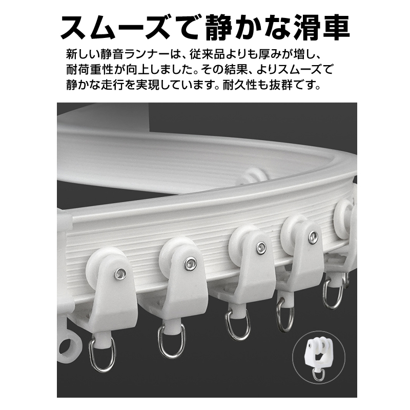 出窓やカーブした壁などの特殊な部屋にもピッタリ、自由に手で折り曲げられるカーテンレール! |