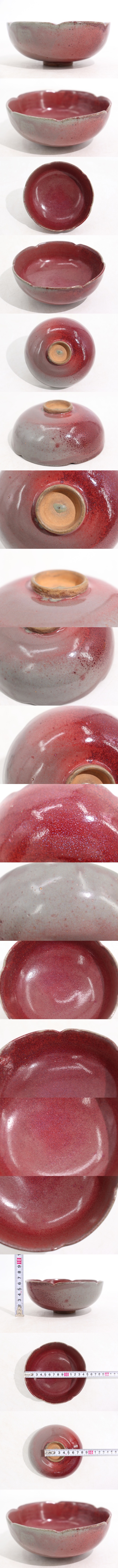 | 時代 辰砂 祭紅釉 花形 鉢 / 中国美術 紅釉 鈞窯 鈞窯釉 牛血紅 茶器 煎茶道具 .G1108 |