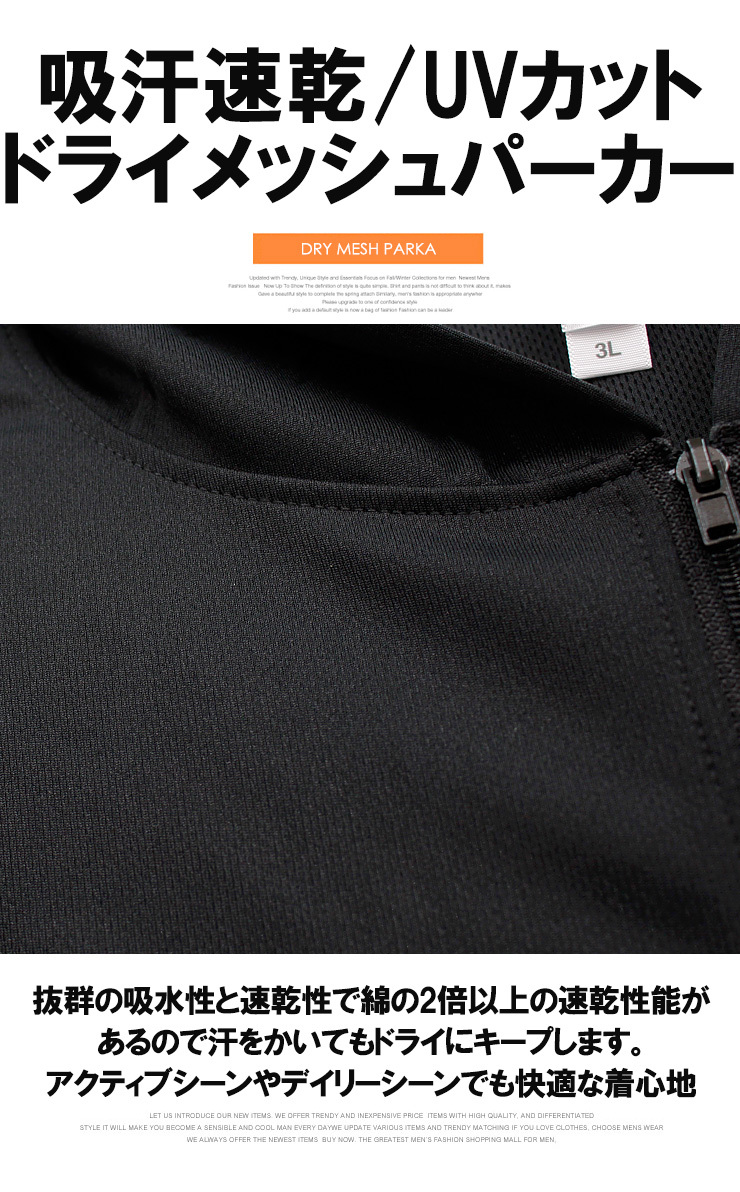 | 商品名 | 【新品】 3L ダークグレー パーカー メンズ 大きいサイズ 吸汗速乾 ドライ メッシュ UVカット 無地 薄手 ジャージ |