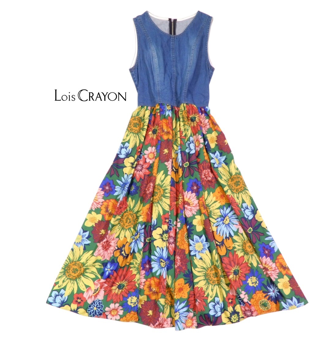 ロイスクレヨン ワンピース サイズ表記:M お色:ウォッシュドブルー、その他 素材:表地 柄部 ポリエステル100 デニム部 綿100 裏地 ポリエステル65 綿35% 平置き実寸で 肩幅34 身幅43 ウエスト部幅36 着丈121㎝位です。 |
