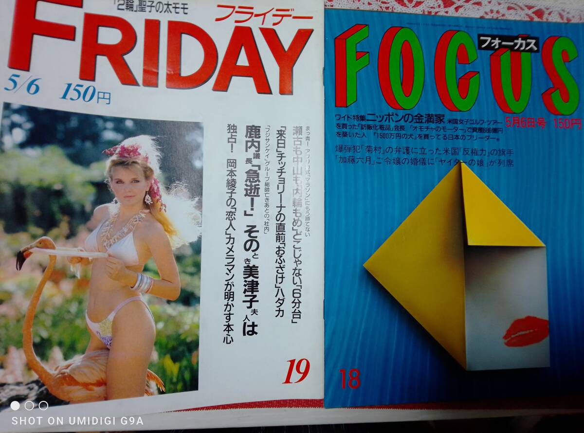 | 商品説明 | フライデー・フォーカス 1988年5月6日号☆2冊セット 経年劣化あります(モノクロページの焼け、傷、擦れ) 2冊で300g(1㎏弱・3㎝弱・A4サイズ位ならゆうパケットで同封出来ます) |
