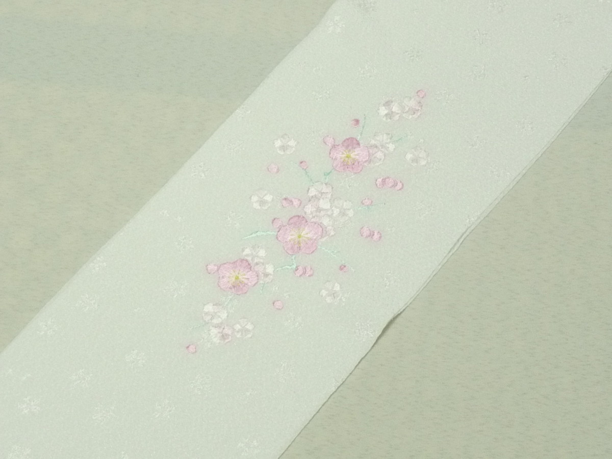 | 商品名 まゆの四季 /新品特価/振袖訪問着用/ポリエステルちりめん/刺繍半衿-20-1白地にピンク梅 | ||