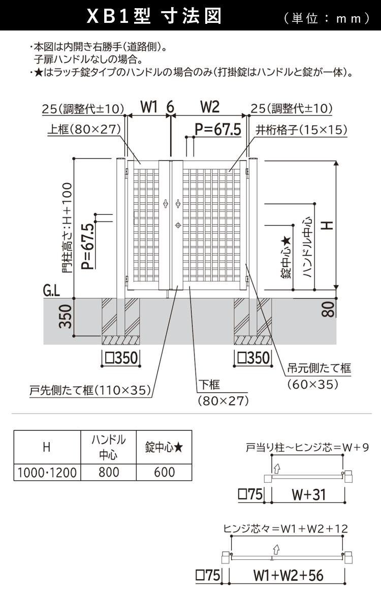 門柱サイズ:75角