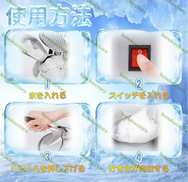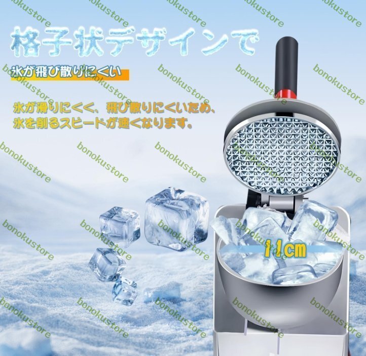 【業務用電動かき氷機】本格的な電動かき氷器、電動による1時間約95kgかき氷がつくれます(1分で約1.5㎏)。喫茶店、日本料理店、海の家、バー、お祭りなどのイベントでも大活躍!【氷のきめ細かさ調整可能】ブレードの高さを調整することで、氷細かさを調節できます。一台のか| 出价者 | 信用 | 价格 | 时间 |