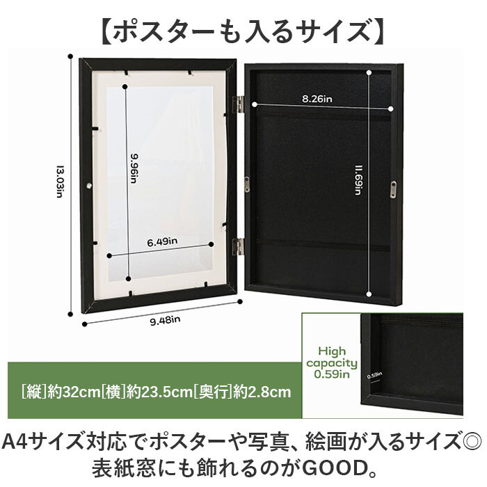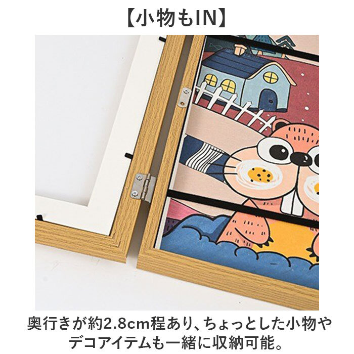 | 商品説明 | ・・【絵や小物も飾れる】 ・絵や写真はもちろん、小物も一緒に入れて飾れるアートフレームディスプレイが新発売。 ・【ポスターも入るサイズ】 ・A4サイズ対応でポスターや写真、絵画が入るサイズ◎表紙窓にも飾れるのがGOOD。 ・【小物もIN】 ・奥行きが約2.8cm程あり、ちょっとした小物やデコアイテムも一緒に収納可能。 ・【お子様の制作物の保存に】 ・お子様が描いた絵画や工作などの制作物の保存にもピッタリなアイテム。 ・【ウェルカムボードにも】 ・カリグラフィーカードを入れてウェディングやお店のウェルカムボードに。 ・【壁に掛けて飾れる】 ・背面に専用のフックを設け壁に掛けて飾るので置き場所に困らないのも嬉しいポイント。 |