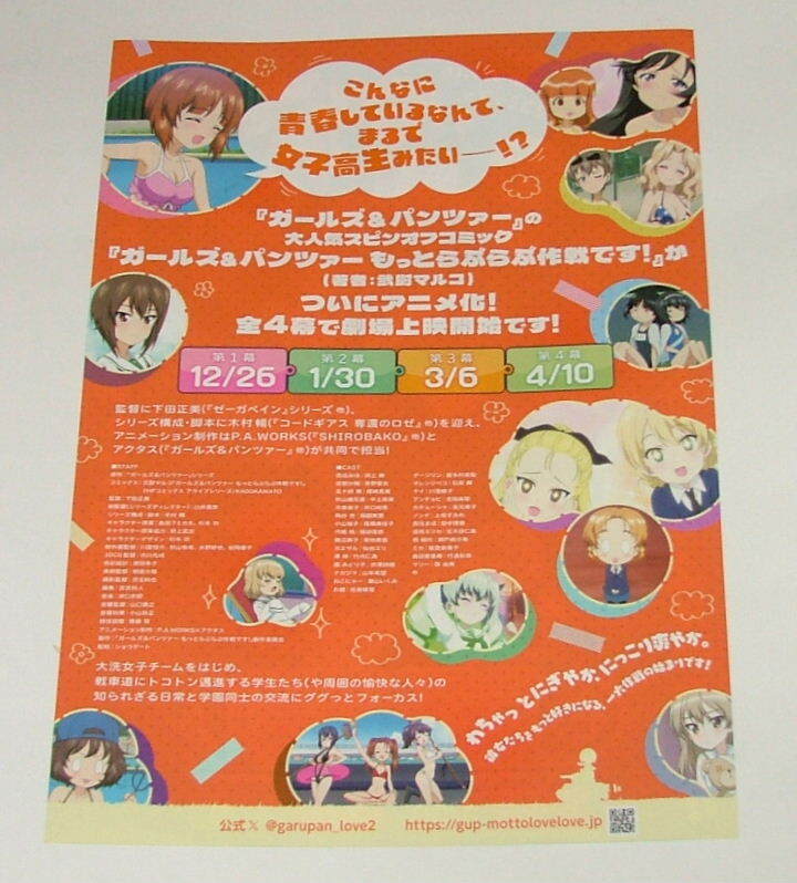 ガールズ&パンツァー もっとらぶらぶ作戦です! 劇場上映 宣伝用 B5サイズの チラシ(フライヤー)1枚です。| 出价者 | 信用 | 价格 | 时间 |