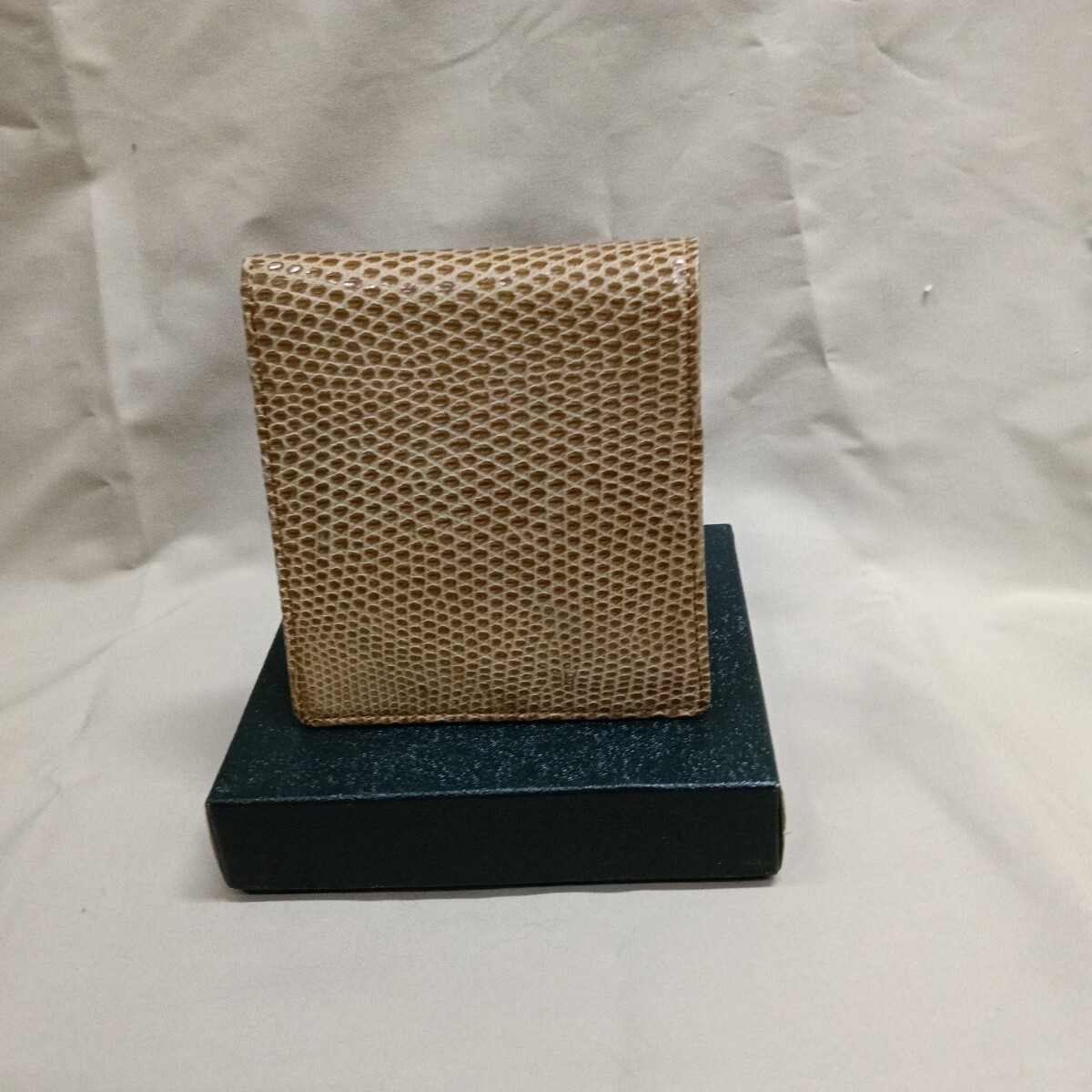 商品に興味をもっていただき、ありがとうございます。新品未使用 日本製 リザード 札入れです。縦約11cm 横約 9.7cm 外側 リザード 皮内側 牛皮 札入れ 部分 2箇所 カード入れ 5箇所 ポケット 2箇所 ホック付き小銭入れ 1箇所 カラーは ベージュです。ヤマト運輸 宅急便で発送いたします 運賃は全国一律1000円ですが 北海道は1200円沖縄は1300円 | 出价者 | 信用 | 价格 | 时间 |