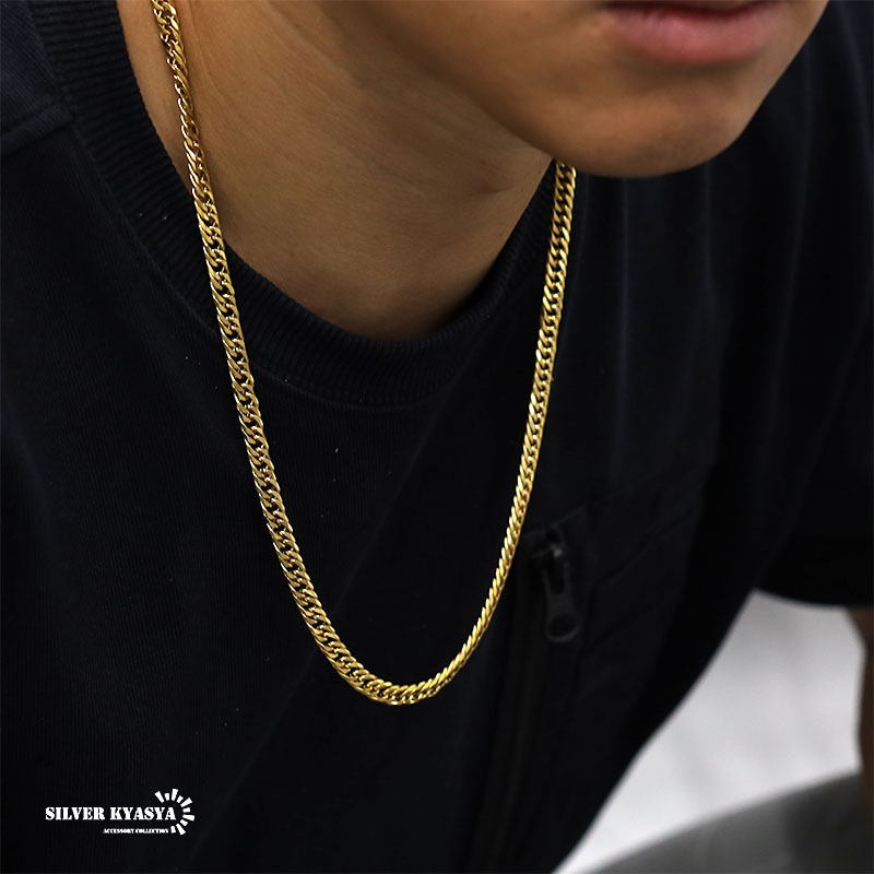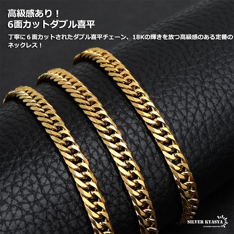 ※こちらの商品は【長さ:60cm】です。別タイプは別商品ページにてお買い求めください。| 商品概要 | ■定番人気の6面カットダブル喜平チェーンネックレス! ■普段使いにはピッタリのネックレス! ■耐久性抜群のステンレス素材で錆や金属アレルギーの心配もなし! ・つけっぱなしOK。 ・金属アレルギーOK。 ・プール、海水浴、お風呂OK。 ・手入れ不要でOK。 ・定番ネックレスなので、プレゼントにもおすすめ ■表面には18Kメッキ加工、高級感のあるネックレス! ■人気の中折式ロックで見た目もカッコ良く、胸元に存在感を演出してくれるオススメできるネックレス! |