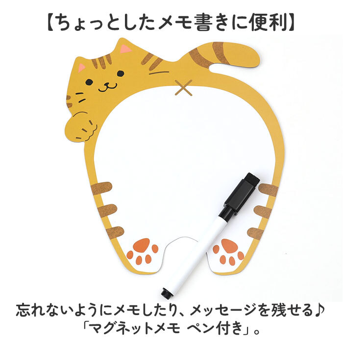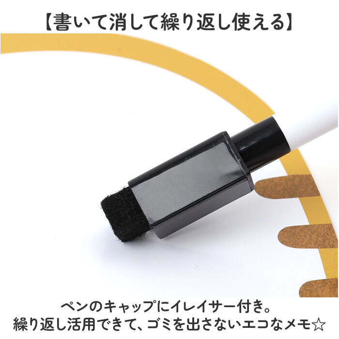| 商品説明 | ・・【ちょっとしたメモ書きに便利】 ・忘れないようにメモしたり、メッセージを残せる♪「マグネットメモ ペン付き」。 ・【書いて消して繰り返し使える】 ・ペンのキャップにイレイサー付き。繰り返し活用できて、ゴミを出さないエコなメモ☆ ・【冷蔵庫などにペタッと貼り付け】 ・背面全面マグネット仕様のメッセージボード。冷蔵庫や金属部分に簡単貼り付け。 ・【空間にアクセントをプラス】 ・ワンちゃんやネコちゃんの愛らしい姿に、心もほっこり♪空間のワンポイントに。 |