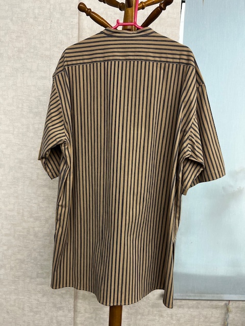 商品ID : 96 COMME CA ISM Purple&Yellow ストライプ シャツ 半袖 ベージュ ブラウン ブルー