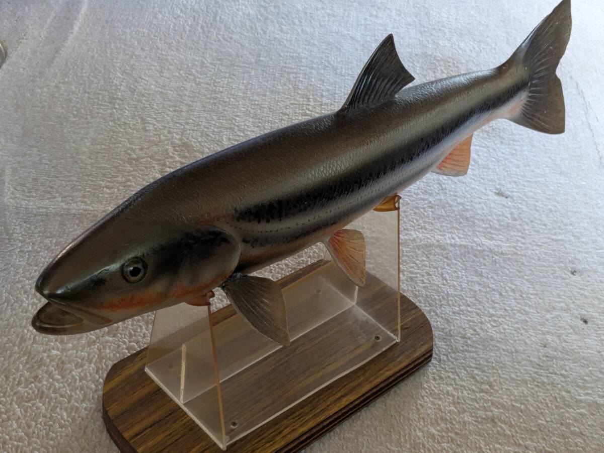 日本では信濃川水系・最上川水系・阿賀野川水系のみに生息し、これまで確認された最大83㎝と日本に生息するウグイの仲間で最大種。また怪魚ハンターで知られる小塚拓矢氏や山根央之氏も釣行したほど一部のルアー・フライフィッシングの愛好者に人気のウケクチウグイのレプリカ。フィッシュフィギュアのような大量企画品にはない魅力があります。