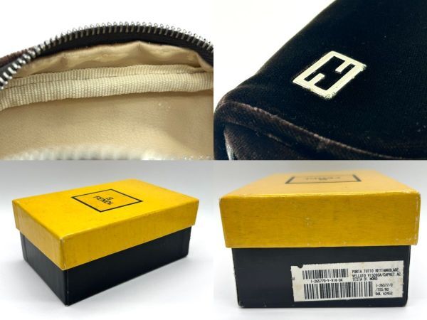 | 【M024】正規品 未使用 FENDI フェンディ PORTA TUTTO ベルベット ミニポーチ ロゴ金具 ダークブラウン ヴィンテージ 箱付き b | ||