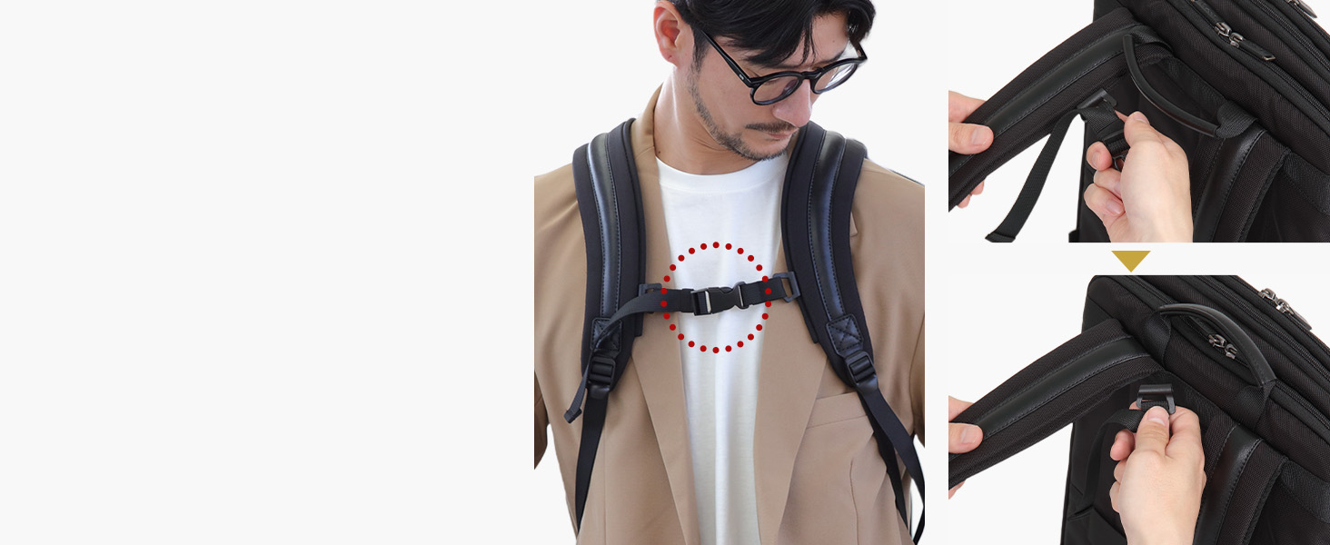 商品の説明![]() 様々な場面にマッチする、派手過ぎず地味過ぎないシンプルでクールな薄型デザイン![]() ![]() 取り外し可能な負担軽減チェストベルト出張・トラベルなどの際にベルトを止めることにより重さが軽減されます。不要な場合は取り外しも可能。上にスライドをするだけで簡単に取り外しが可能。その日の気分に合わせてご利用ください。![]() リュックが180度開いて中身が見えやすい180度リュックが開く構造。中の収納物の出し入れや整頓が行いやすくなります。![]() ガバッと開きにくくする設計扇マチのストッパー付きでガバッと開きたくない場合には調整も可能。![]() 本革を使用し高級感の演出ショルダー部分に本革のレザーをアクセントに採用。その他にも様々なパーツに本革を散りばめて高級感をUPさせます。![]() | |