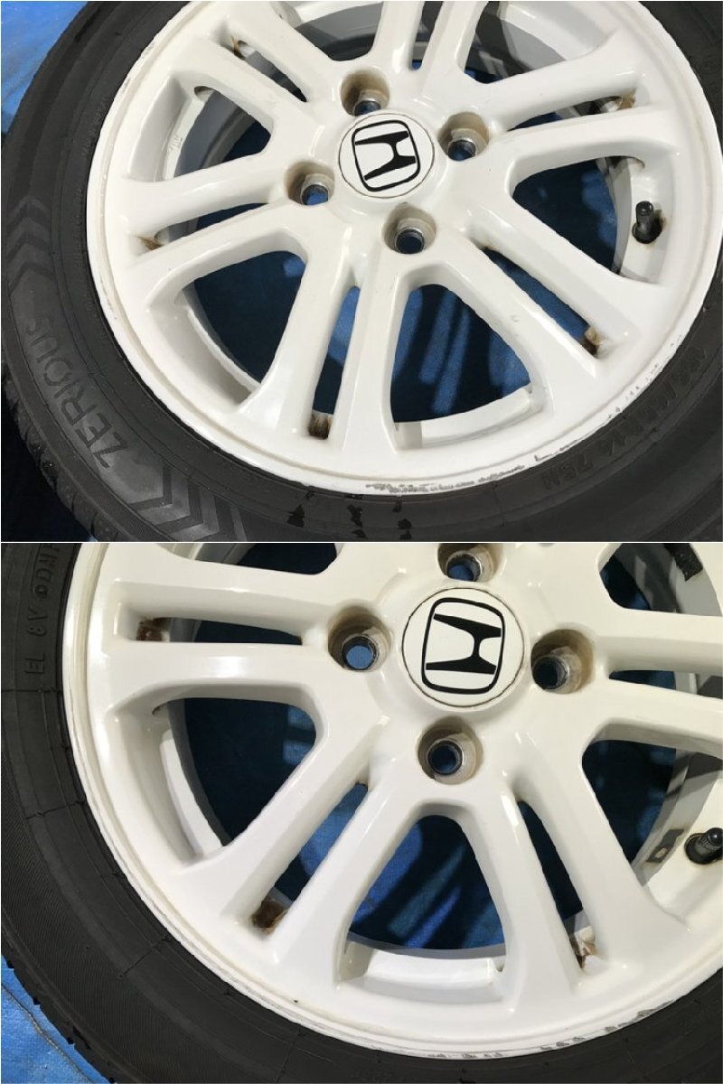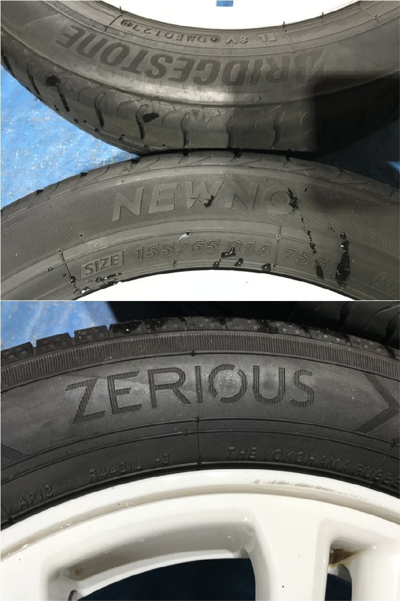 | 商品説明 | ホイール ホンダ純正 アルミホイール 14-4.5J 4H/PCD100 ET40 ハブ径約 φ56 タイヤ BRIDGE STONE NEWNO 155/65R14 2023年製×2本 2024年製×1本 バリ溝タイヤ ZERIOUS 155/65R14 2025年製×1本 バリ溝タイヤ 中古 4本 トータル金額は 落札価格+送料 ※沖縄・全国離島は送料とは別に中継料プラスかかります。 ●タイヤの状態 残り溝 BS:4.0~5.0mm 6~7山目程度 残り溝 ZE:6.5mm 9山目程度 ●ホイール状態 歪みチェック済。歪みありません。 ●他備考 中古ですので、使用に伴う小傷/スリ傷などあります。ご了承ください。 ●参考適合車種 ホンダ N-BOX/N-BOX +/N-BOX SLASH N-ONE/N-WGN など ホンダ軽自動車に! ※型式により不可有。参考程度にお考え下さい。 ●管理番号 HM001253 当店の商品はこの道数十年のベテランスタッフによる入念な点検後、出品しております。ご安心下さい! ※ただし、中古品の為、写真に写っていないヒビや小傷もある場合があります。 目立つヒビや傷に関しては優先的に載せるようにはしておりますが、全てを載せられる訳ではございません。 商品に関しては基本的に実商品の現状を優先させて頂きます。ご了承の上ご入札にご参加下さい。 商品化後は徹底した管理のもと,倉庫保管となりますのでタイヤの劣化を最小限にと心掛けております。 ※直接のお渡しも可能です。送料はかかりませんが、別倉庫保管の為当社配送料1,000円(税別)を別途頂きます。 手渡し場所は〒808-0021 福岡県北九州市若松区響町1-86-3になります。 手渡し可能日時は日曜日・祝日を除く9時~16時までになります。 御入金確認後、翌日にはお渡し可能となります。 送料は掛かりませんが、当方倉庫からの配送手数料1,000円(税別)がかかりますので予めご了承下さい。 また落札後に当方で送料の変更を致しますので、案内に沿ってお手続きをお願い致します。 注意事項 | ☆こちらの商品は佐川急便での発送となります☆ (個人宅配送可能) 代引き対応いたします。 代引き手数料 600円 地域別送料(税込) 北海道 9,000円 東北 7,600円 青森県 岩手県 宮城県 秋田県 山形県 福島県 関東 6,500円 東京都 神奈川県 埼玉県 千葉県 茨城県 栃木県 群馬県 山梨県 中部 6,000円 新潟県 富山県 石川県 福井県 長野県 岐阜県 静岡県 愛知県 三重県 近畿地方 5,500円 滋賀県 京都府 大阪府 兵庫県 奈良県 和歌山県 中国・四国 5,000円 鳥取県 島根県 岡山県 広島県 山口県 徳島県 香川県 愛媛県 高知県 九州地方 4,500円 福岡県 佐賀県 長崎県 熊本県 大分県 宮崎県 鹿児島 沖縄県・離島 お問合せ下さい。 ※弊社指定の宅配業者様からの配送になります。配送業者はご指定頂くことは出来ませんのであらかじめご了承下さい。 また、宅配便以外のメール便・定形外郵便などによる発送は行っておりません。 ※すべての料金に別途消費税がかかります。 ※ご質問無しのサイズ、マッチング間違いなどの落札後のキャンセルは一切お受け出来ませんのでご注意下さい。参考適合車種に関しましては年式/グレードにより異なる場合があります。あくまで参考程度にお考え下さい。必ずしも適合をお約束するものではありません。 ※終了日から7日間経過しても、弊社に「ご落札情報」が届かない場合や、「ご落札情報」が届いてから7日間経過しても、ご決済を完了されない場合は「キャンセル扱い」とさせて頂きます。なお、ご落札後のキャンセルにつきましては!オークションのシステム利用料(落札価格の7.6%)をご負担頂きますのでご了承下さい。同意頂ける方のみご入札をされますようお願いいたします。返品の際の送料もお客様負担となります。 ※コンディションにつきましては、弊社独自の基準に基づいた評価となりますので、目安程度とお考え下さい。商品管理スタッフの個人的な主観となりますので、必ず画像を確認して頂き、ご理解頂ける方のみご入札をお願い致します。ご不明な点は必ずご入札の前にご質問下さい。基本的に画像に写っている物がお届けする全てとなります。画像をよくご確認頂き、ご納得の上、ご入札をお願い致します。 ※落札者様から評価を先に頂いた場合のみ、評価をお返ししておりますので予めご了承下さい。なお、オークション終了後、落札者様都合によるキャンセルを行った場合、自動的に落札者様に「悪い評価」が付きますので予めご了承下さい。 ※領収書は原則的に弊社からは発行しておりません。各お支払い方法により下記の通りとさせて頂いております。 ■銀行振込:金融機関への振込依頼書・払込受領書をもって領収書に換えさせていただきます。 ■代金引換:送り状伝票に付属の配送業者が発行する代引金額領収書をもって領収書と換えさせていただきます。 ■かんたん決済:お客様ご契約のクレジットカード会社が発行するご利用明細書をもって領収書と換えさせていただきます。 ※商品は店舗スペースの都合上、店舗に保管していない場合がございます。ですので、商品を実際にご確認希望のお客様はあらかじめメール、またはお電話にてご連絡下さい。 