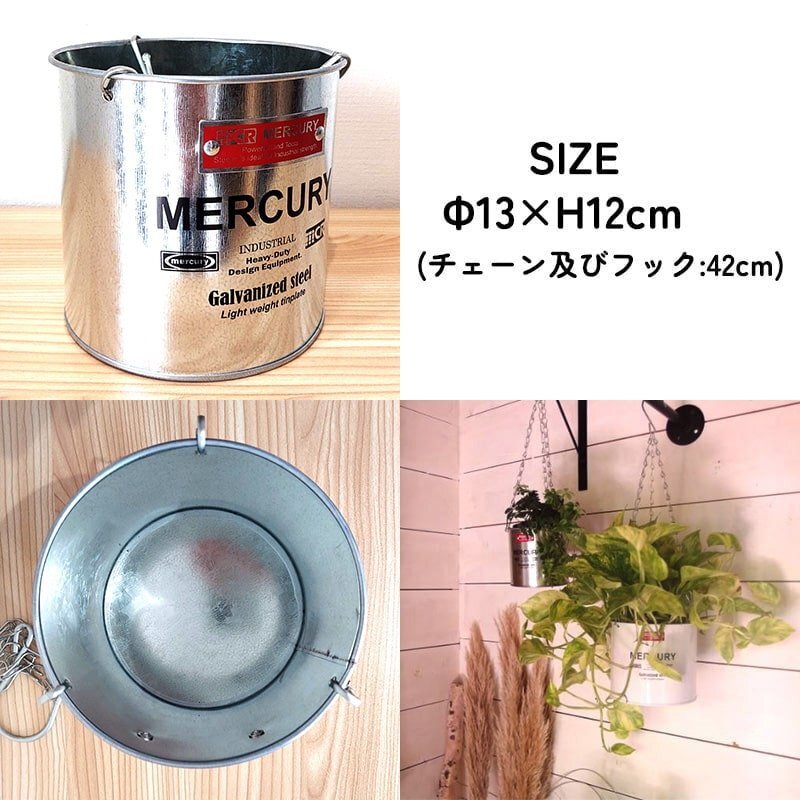 「マーキュリー ブリキハンギングポットS」 マーキュリーのおしゃれなブリキ製ハンギングガーデンポットです。 こちらはSサイズ(4号鉢サイズ)となります。 フック付きのチェーンが付いているのでお気に入りの植物を飾っちゃいましょう。 ガーデニングはもちろん、お部屋に小物等を入れてインテリアにしても可愛いです! プレゼントにもいかがでしょうか? |