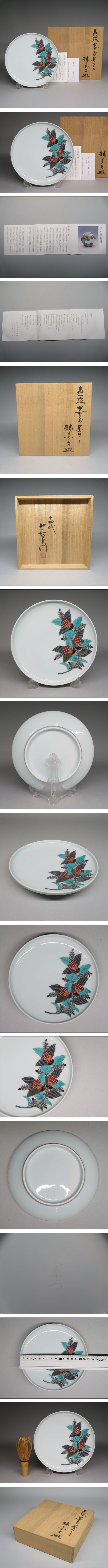 人間国宝【十四代今泉今右衛門】本人作 色絵墨色墨はじき瑞花文皿 共箱 茶道具 | |||