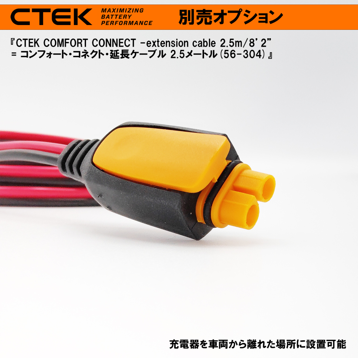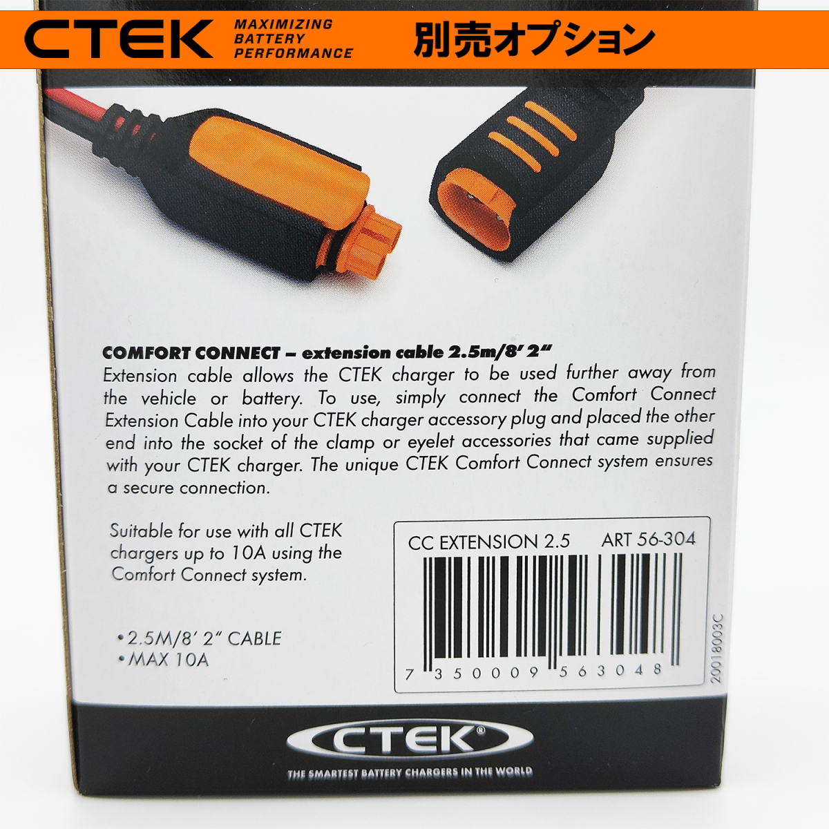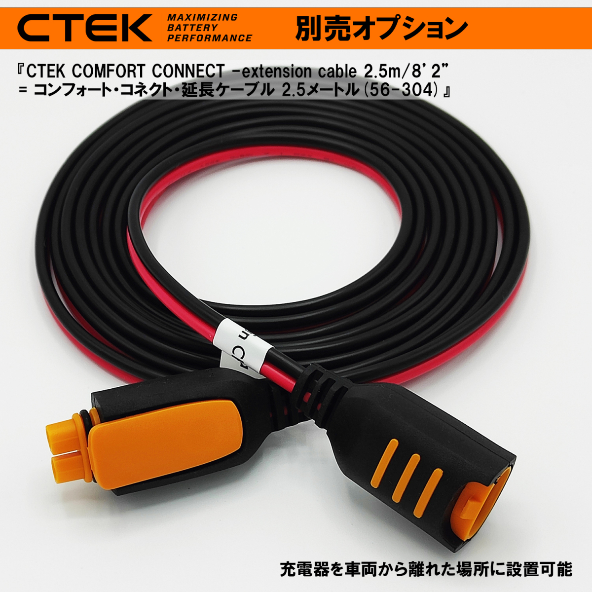 | 新品・並行輸入品 コンフォート・コネクト・延長ケーブル(2.5m) コンフォート・コネクト対応の延長コードでCTEK充電器をより安全な場所に設置できます 2.5メートル・ケーブル 最大10A 全てのCTEKコンフォート・コネクト製品、アクセサリーに対応 |