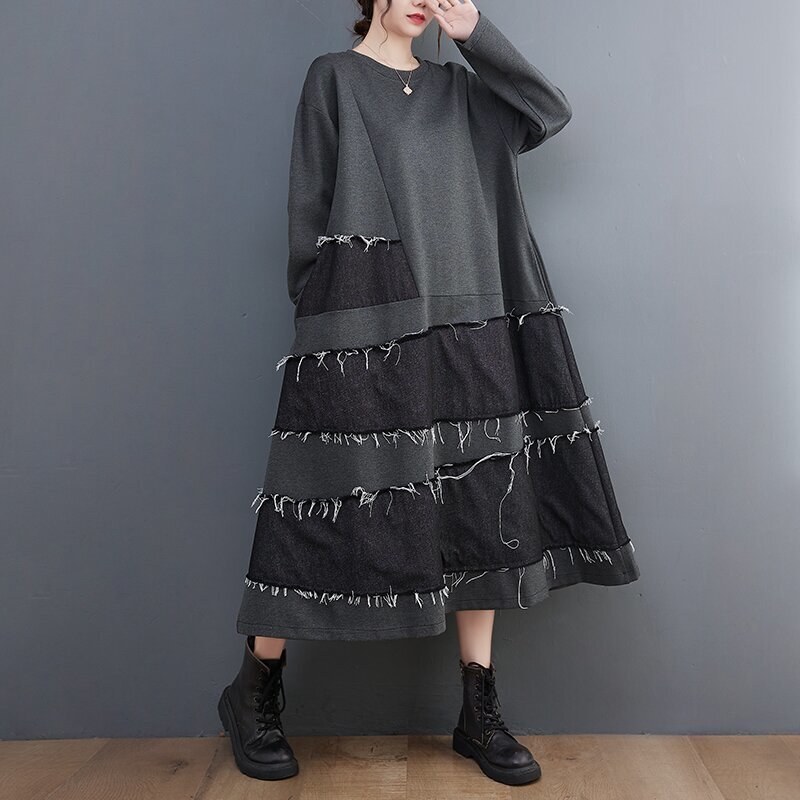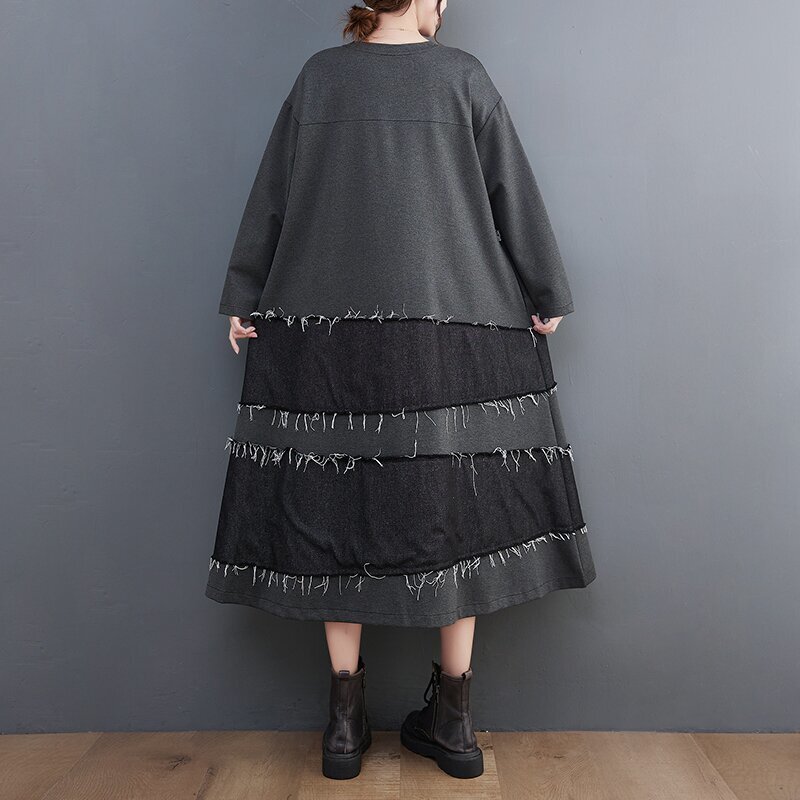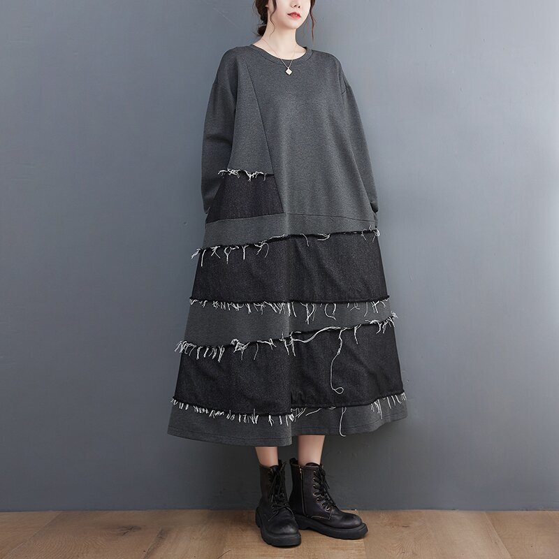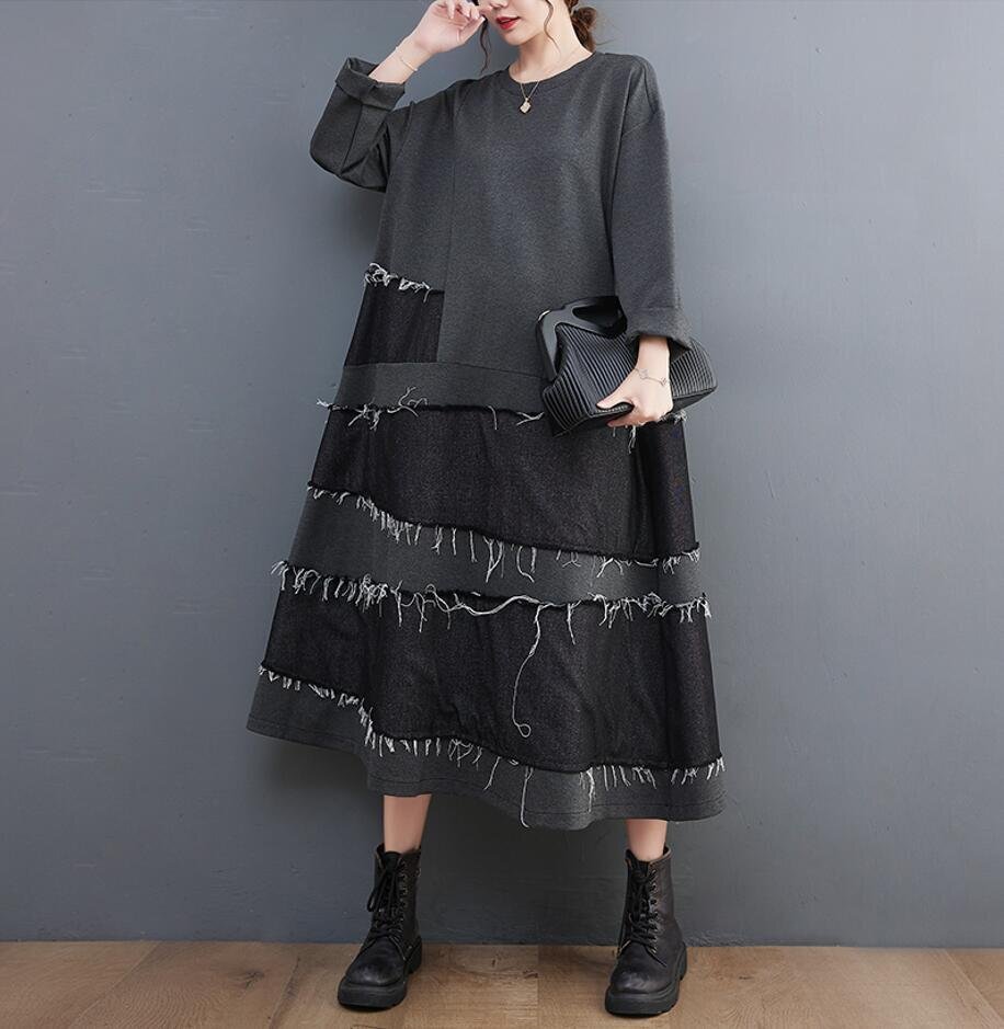 Fサイズ■秋冬新品 カジュアル ゆったり 大きいサイズ デニムロングワンピース 長袖 体型カバー マキシワンピース★ [浏览原始页面]