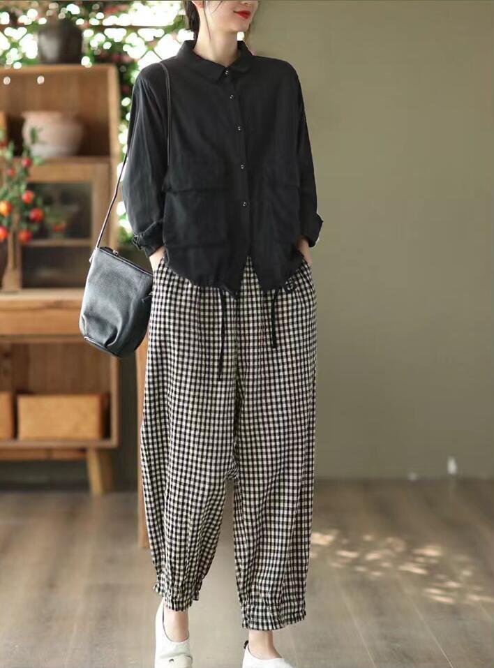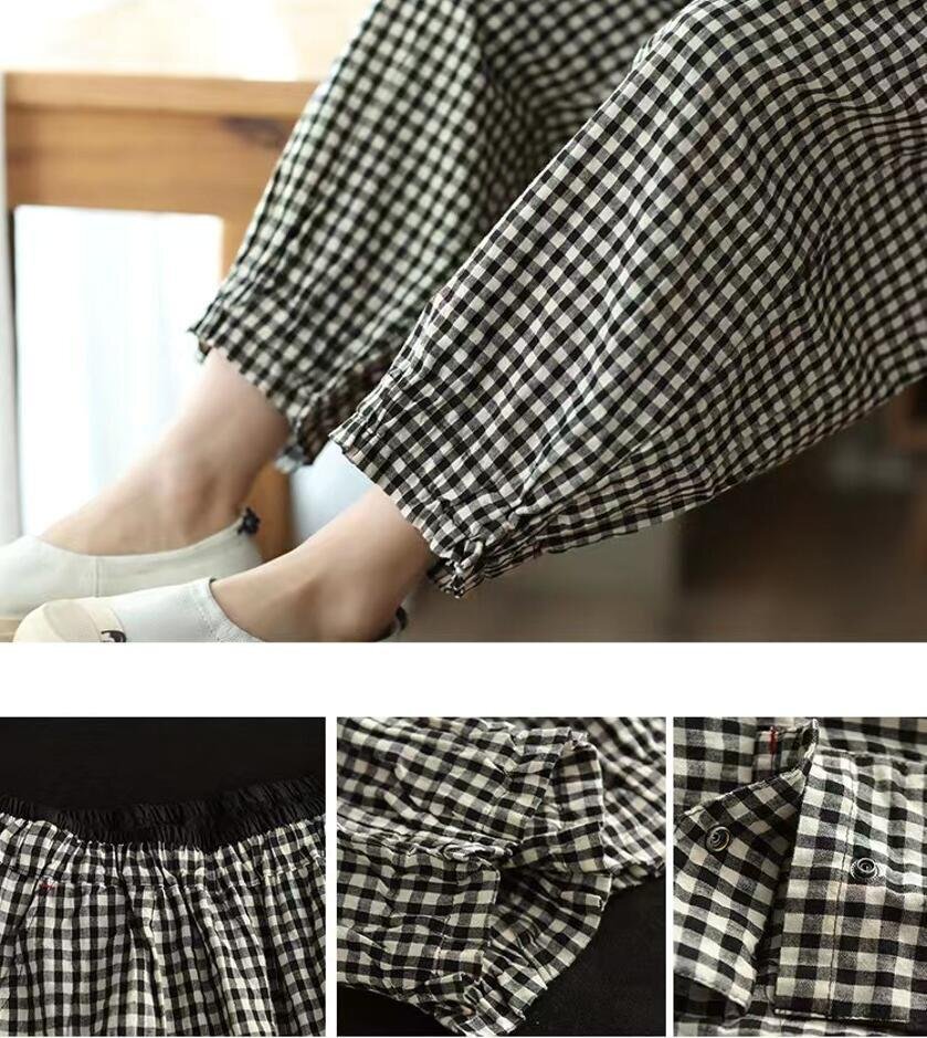 春新品 レディースボトムス 大人気 綿麻 ガウチョパンツ 大チェック柄 大きいサイズ ワイドパンツ★Lサイズ [浏览原始页面]