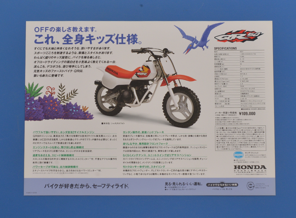 | ホンダ QR50 キッズ仕様 のカタログです。 HONDA QR50 カタログ 型式 AE01 発行 1996年7月 一枚です。 販売店スタンプ・シールはありません。 きれいな状態です。 ほぼA4サイズです。 古いカタログのため年式相応の汚れ・シワがあります。 気なる方はご購入をご遠慮ください。 中古品としてご理解いただける方のみご入札ください。 段ボールで補強してビニール包装して送らせていただきます。 なかなか手に入らない希少品です。 この機会にご入札ください。 ★送料 お問い合わせ番号付きのお手軽配送ゆうパケットで送らせていただきます。 送料は 230円 です。 ゆうメールをご希望の方は送料 100円 です。 いたずら入札防止のため、新規の方や評価の極端に悪い方は入札を取り消す場合がありますので予めご了承くださいませ。 | ||