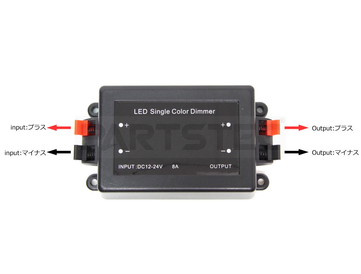 | 注意事項 | ■本商品は元の明るさ以上に明るくする機能はありません。減光調整機能になります。 ■安定器、コントローラーなどの制御機能がバルブやユニットに内蔵されている場合(シャンデリア球など)、調光できません。 ■障害物によってリモコンの反応が悪いことがありますので設置場所を変えるなどしてご対応ください。 ■リモコンの電池の型式は12V 27Aアルカリ電池になりますので、電池切れになりましたらお買い求めください。 ■12V/24VのLEDに対応していますが、96Wを越えないように使用してください。 ■取り付けは両面テープやビスでしっかりと固定してください。 ■ハロゲン、HID、LEDヘッドライトにはご使用になれませんのでご注意ください。 ■無極性LEDでも使用できますが減光調整によりノイズが発生することがありますので予めご了承ください。 ■防水仕様ではありませんのでお取り扱いにご注意ください。 ■接続不良はショートや車両・商品の不具合になりますので、専門業者やご自身の責任で行ってください。その他のトラブルにつきましても一切の責任を負いかねます。 |