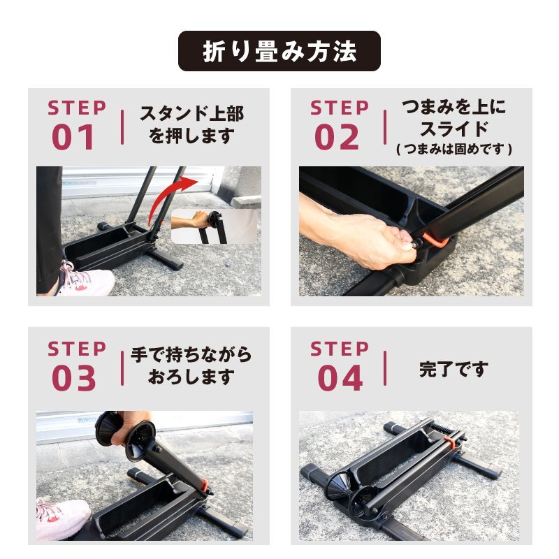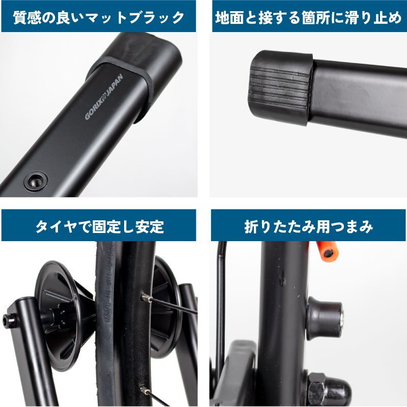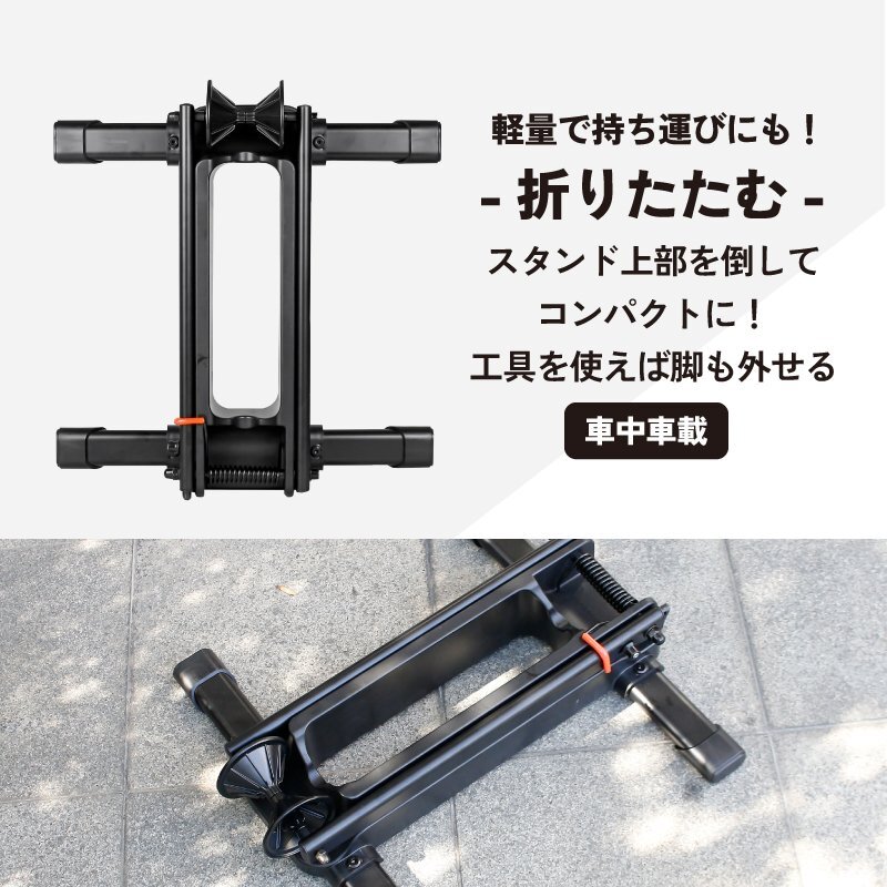 このスタンドは、20インチから29インチまでの自転車に対応し、ロードバイク、クロスバイク、マウンテンバイク、折りたたみ自転車など、さまざまなタイプの自転車に対応可能。 最大68mmのタイヤ幅に適応。