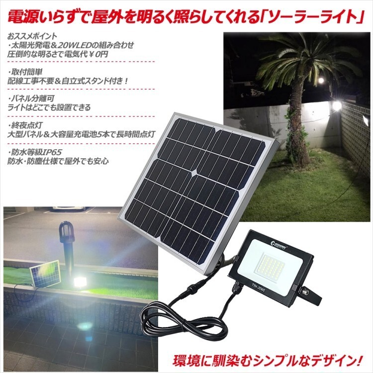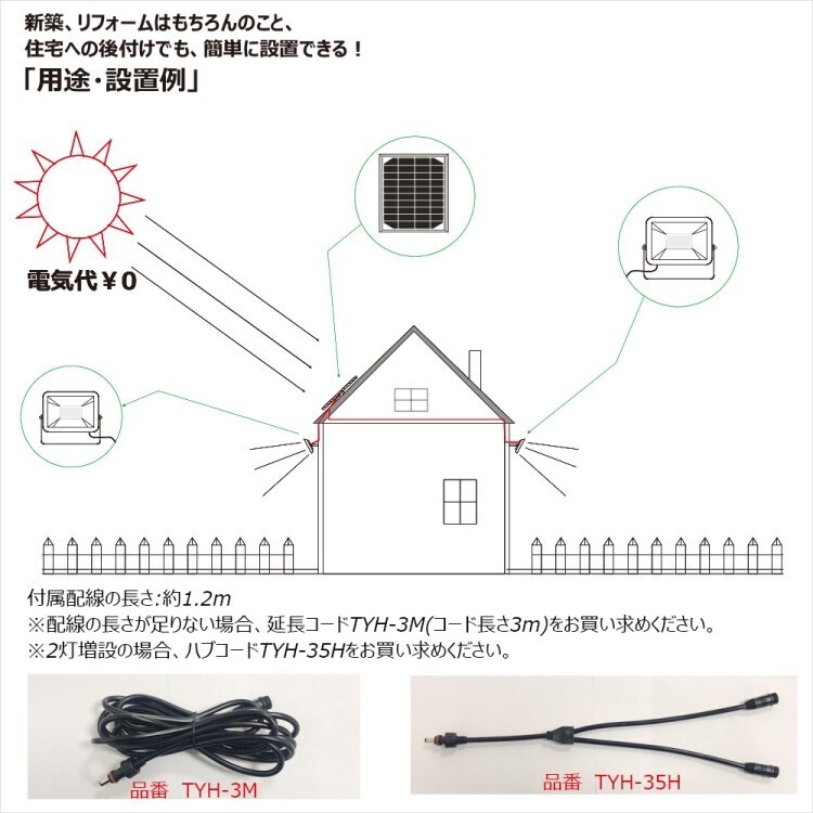 | 防水等級 | IP65 | コードの長さ | ライト分:約1.2m;ソーラー発電システムTYH-5JB分:約25cm |