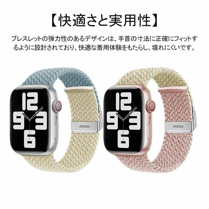 取り付けと取り外しが簡単---編組弾性バンドには、スマートウォッチに正確かつ安全にロックするリリースピンが両端に付いています。直接インストールして数秒で簡単に削除できます。